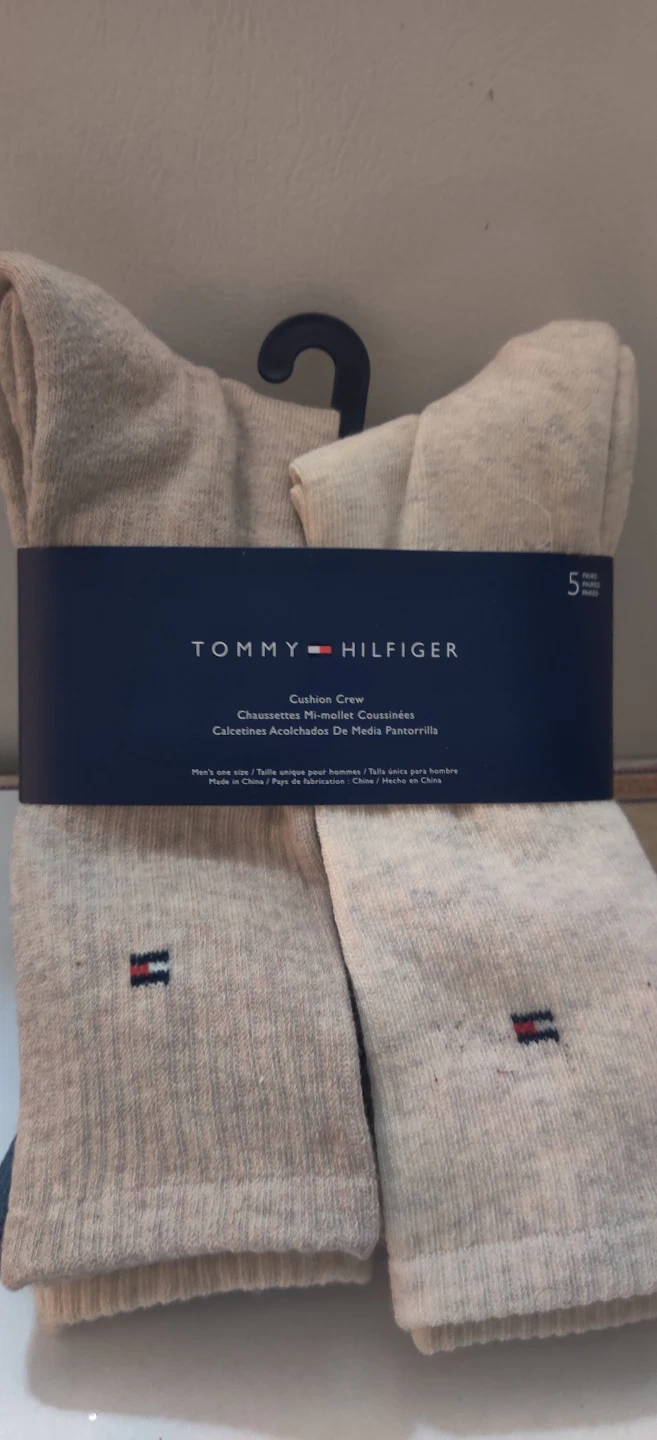 Tommy Hilfiger men's cushion crew socks in an assorted khaki and blue colourway. These socks come in one size for men. They're made for comfort with cushioning. Great for everyday wear!