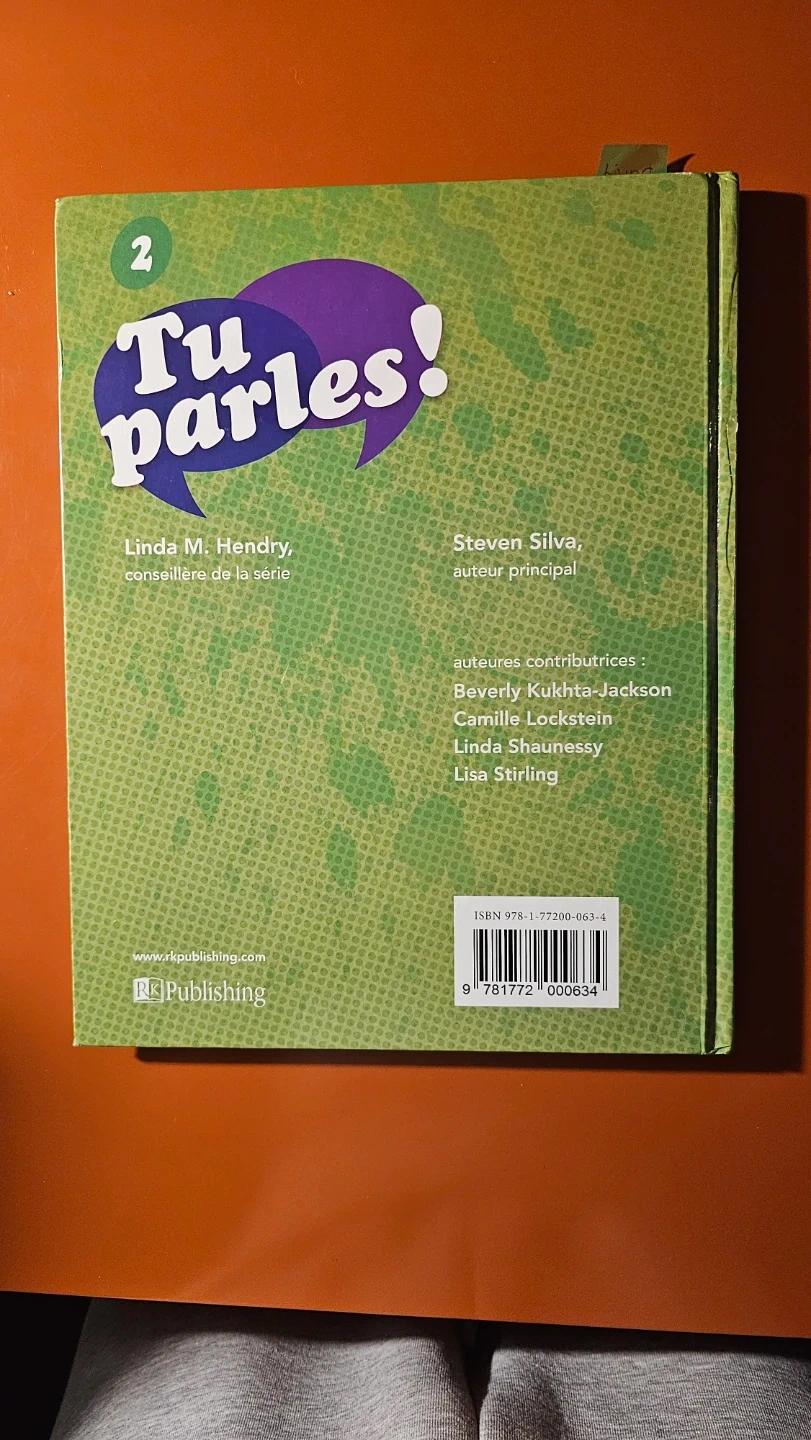 This is the "Tu parles! 2" French language learning book. It's part of a series and includes contributions from multiple authors. Published by RK Publishing.
