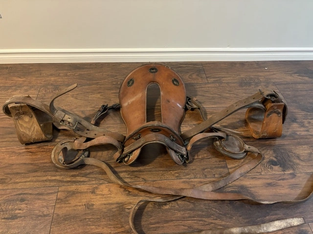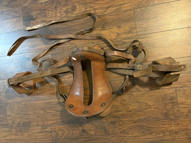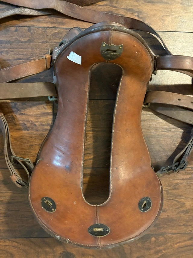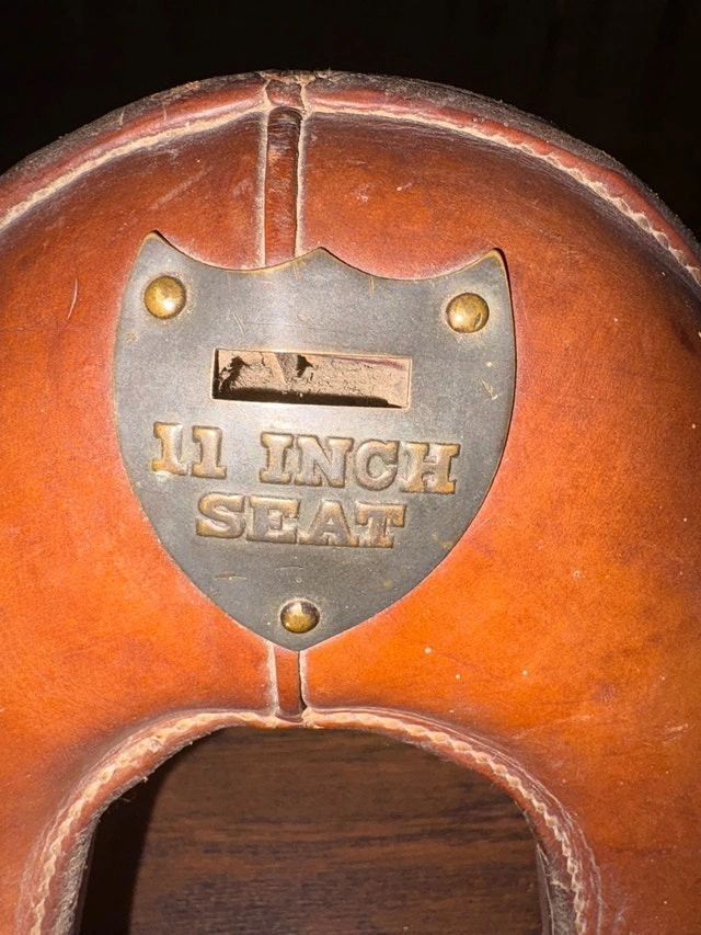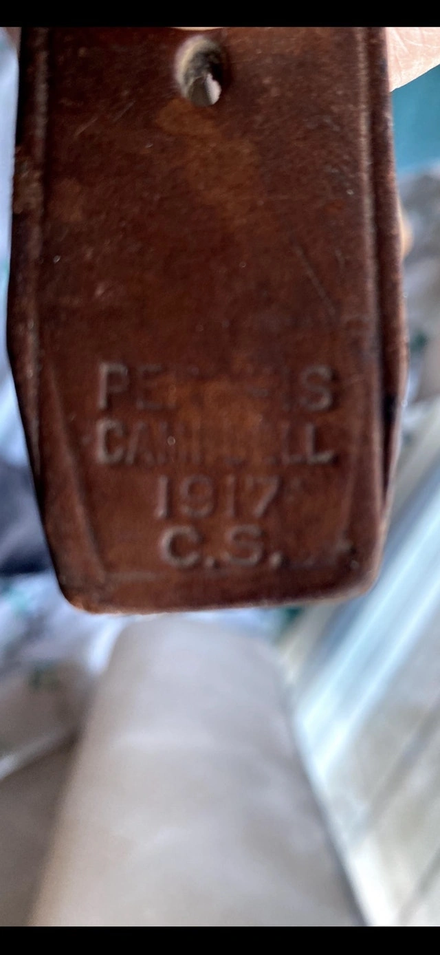 This is an 11-inch military horse saddle, Calvary. The manufacturer is Perkins Campbell. The date stamp is 1917, indicating production during World War I. Wood, feet, and straps are in very good condition for its age. I'm looking to learn more about it and am open to offers.