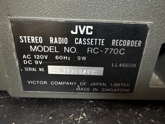 Rock out with this vintage JVC RC-F77 AM/FM stereo radio cassette recorder boombox! This unit has been previously enjoyed, which only adds to its retro charm. You can expect it to deliver robust sound and classic aesthetics synonymous with the JVC brand. Perfect for collectors, music enthusiasts, or anyone looking to add a touch of old-school cool to their space. Key features include: - FM/AM Radio - Cassette Player - Stereo Speakers - Classic Silver Finish. I've priced this gem at $200CAD. If the ad is up, the boombox is available. Cash accepted.