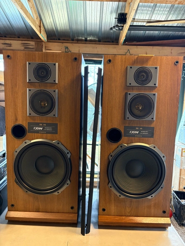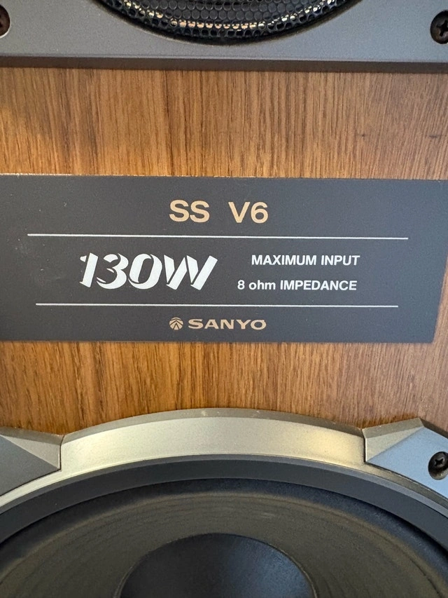 These Sanyo SS V6 speakers deliver a powerful 130W output with an 8 ohm impedance, providing a rich and immersive audio experience. Specifications: Maximum Input: 130W Impedance: 8 ohm Model: SS V6 If the ad is up, the item is available. Cash accepted.