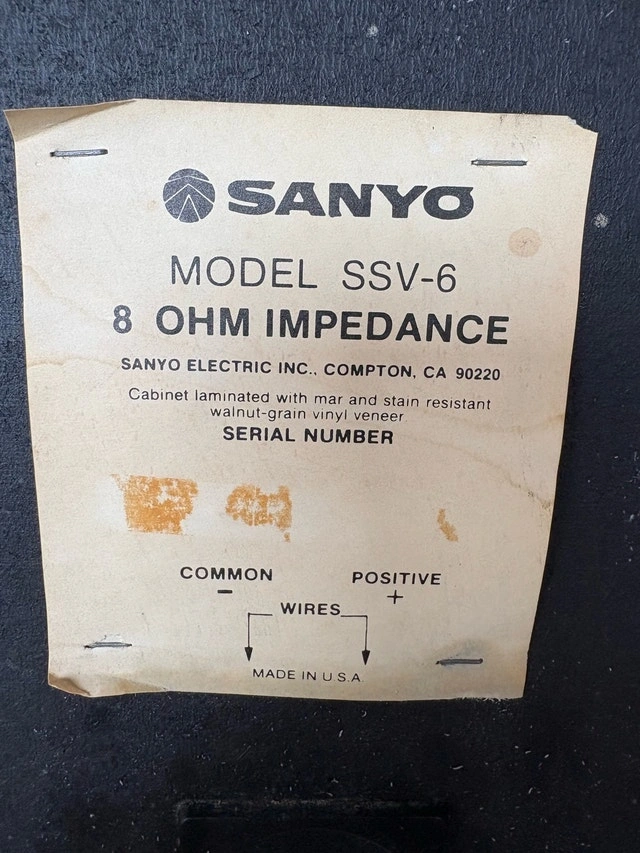 Sanyo SS V-6 8 OHM IMPEDANCE