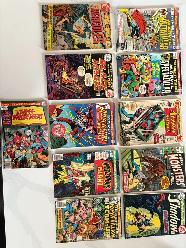 Dive into a treasure trove of vintage comic books! This collection features a variety of titles and publishers, perfect for collectors and enthusiasts. The comics are in used condition, showing some wear consistent with their age, which only adds to their nostalgic charm. Please see the images for details on condition. If this ad is still up, yes, they're still available! Cash accepted.
