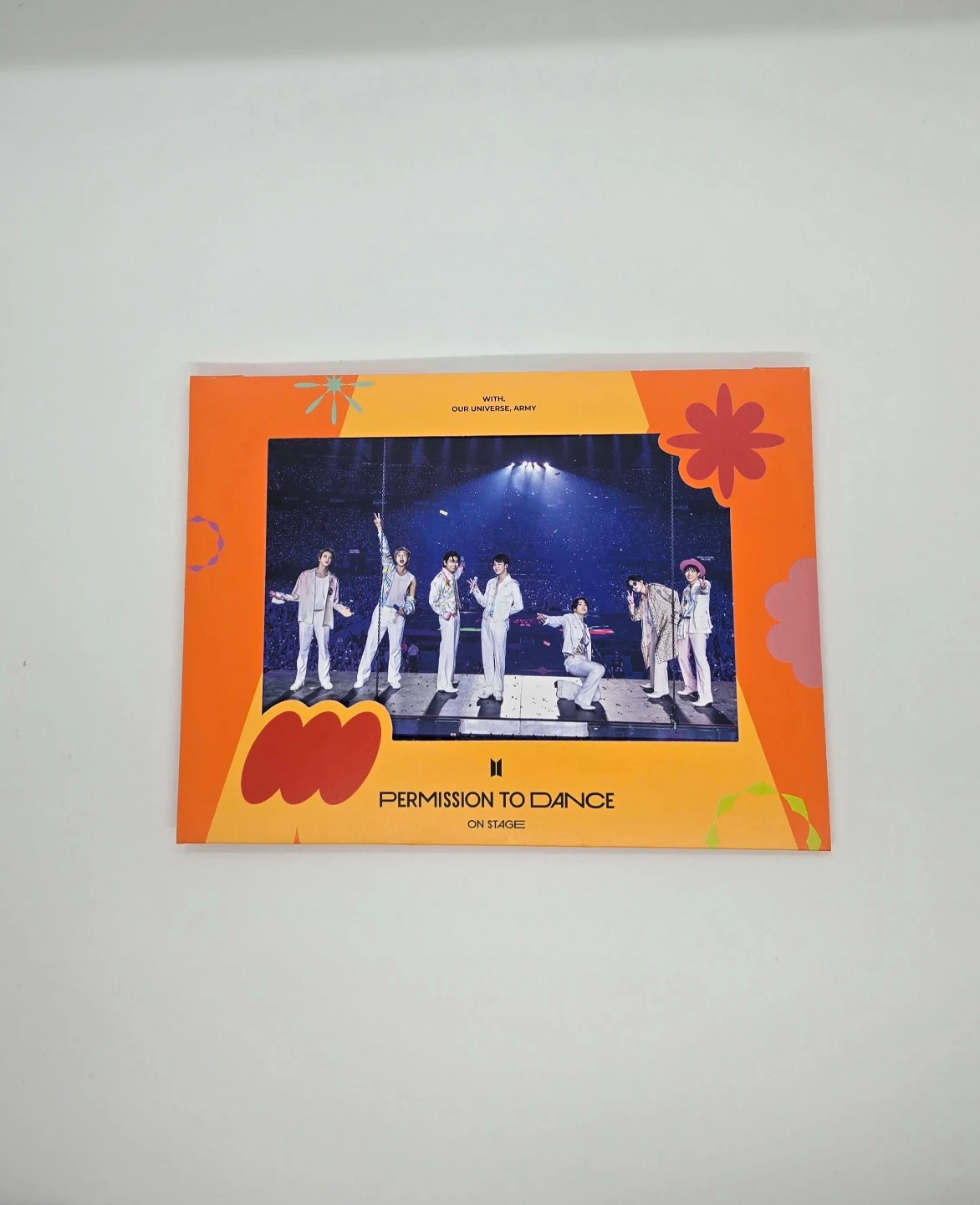 The BTS Permission to Dance on Stage US Digital Code is a unique and collectible item for ARMY. This original piece of music memorabilia includes a digital code for a special stage experience, 2 photobooks, Photocard set, Postcard, Frame Stand and a photo charm featuring J-Hope, one of the group members. Perfect for ARMY this item offers a special opportunity to add a unique piece of entertainment memorabilia to their collection.
