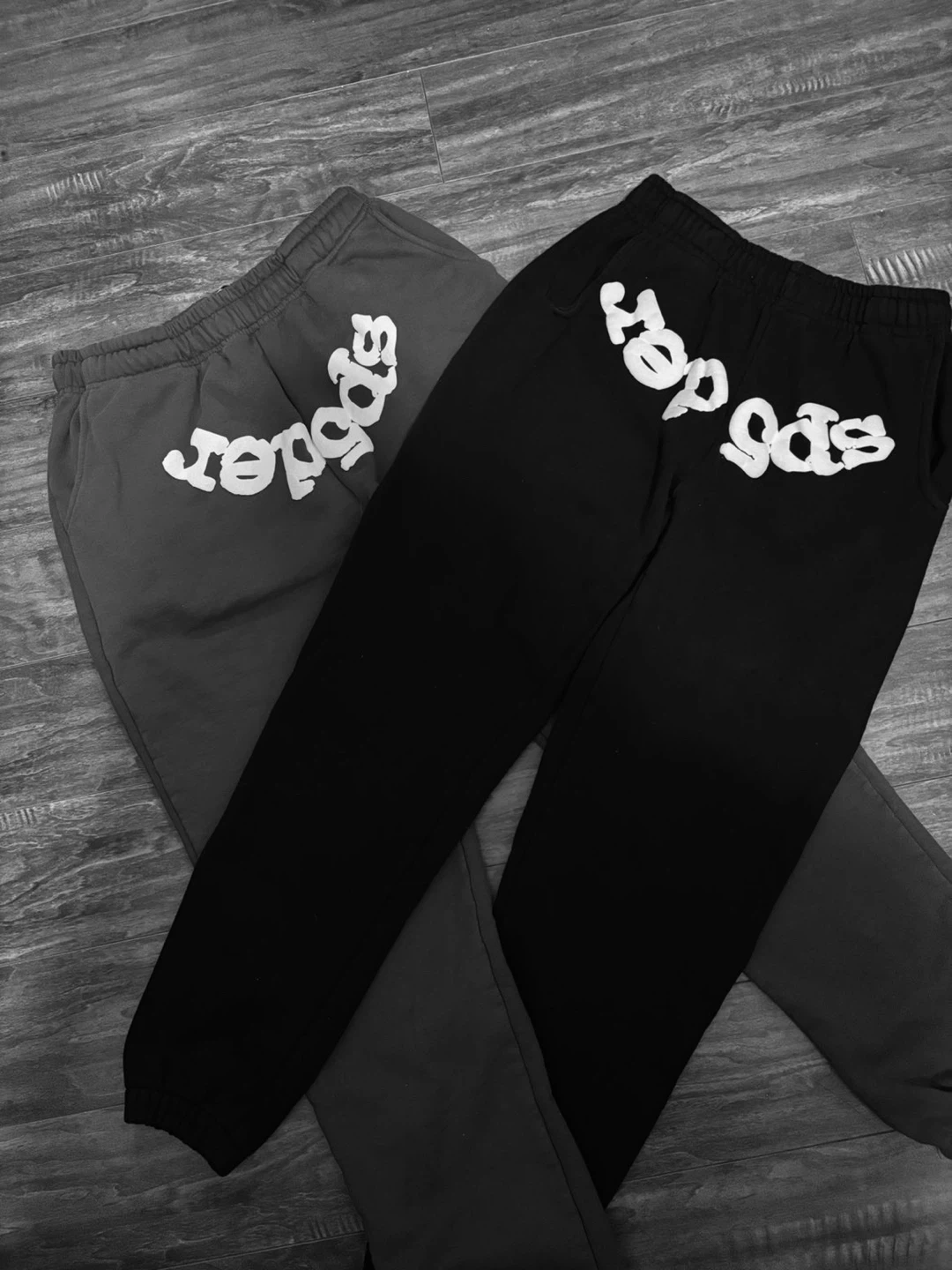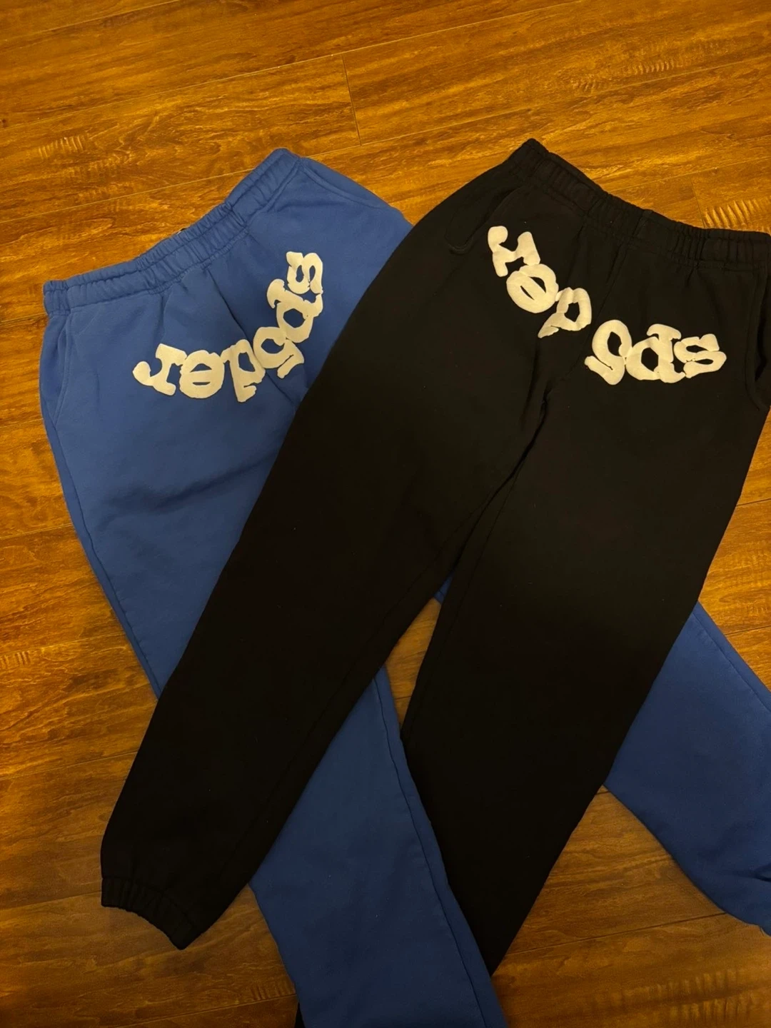 Comfortable sweatpants with "Spider" logo detailing. Available in black and blue!