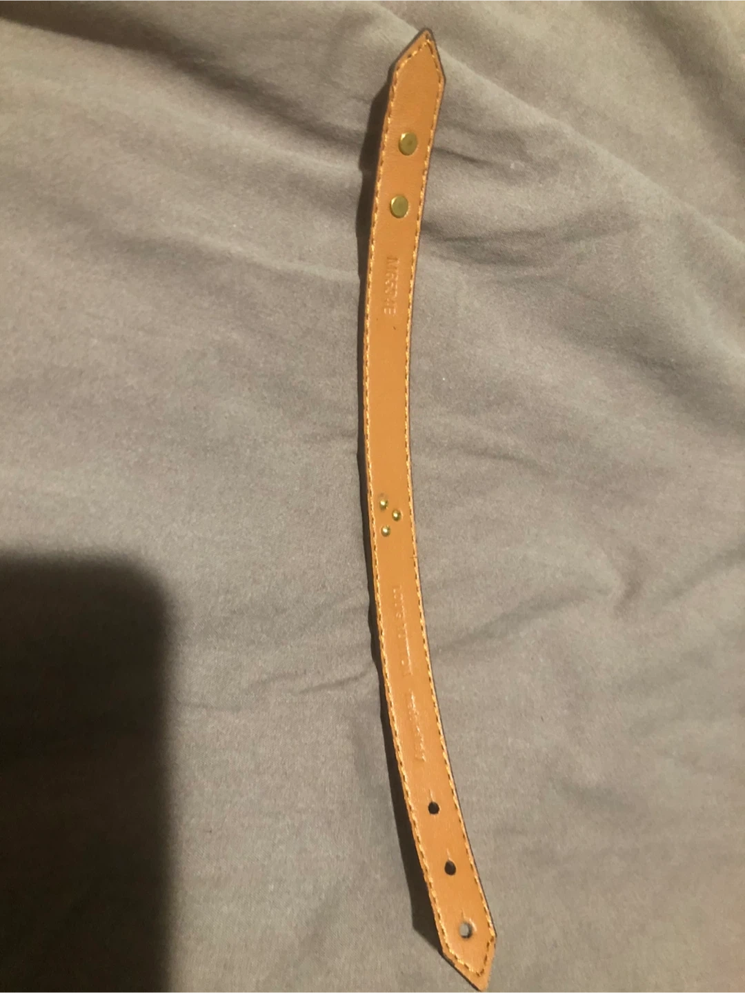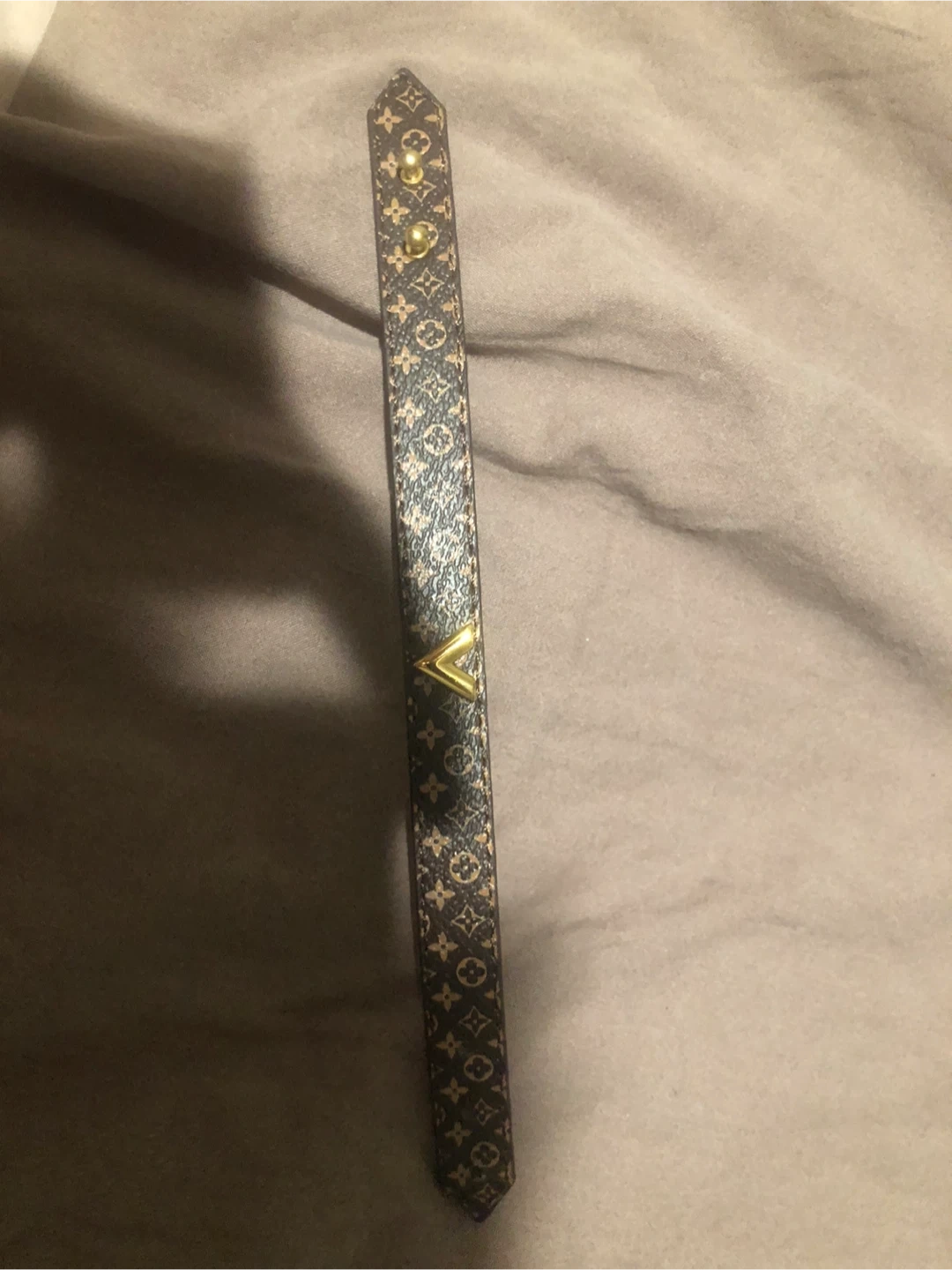Authentic Louis Vuitton bracelet featuring the iconic monogram pattern. Crafted from quality materials with gold-tone accents. It's a stylish accessory for any outfit.