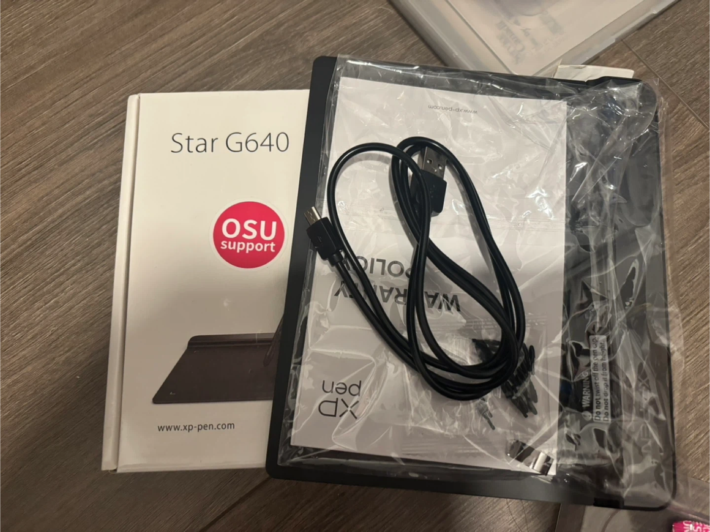 This is an XP-Pen Star G640 drawing tablet. It supports OSU! gaming. Includes the original box and a USB cable. Perfect for digital art and gaming!