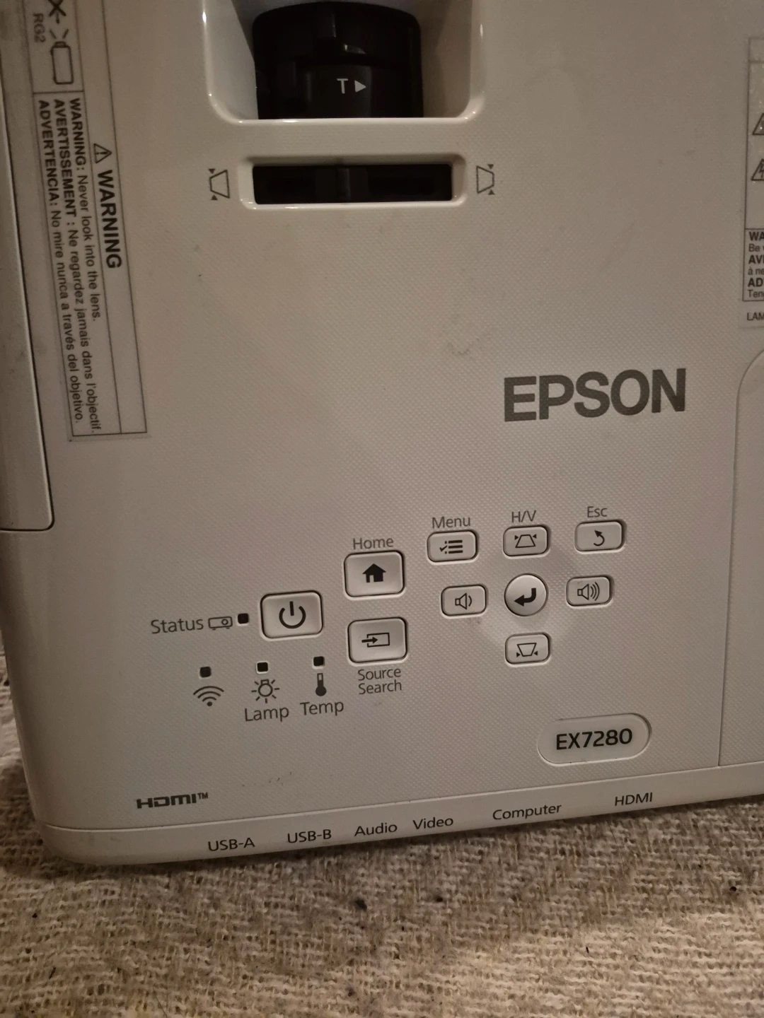 This is an Epson EX7280 3LCD projector. It features HDMI, USB-A, and USB-B inputs. It's ideal for presentations or home theatre setups.