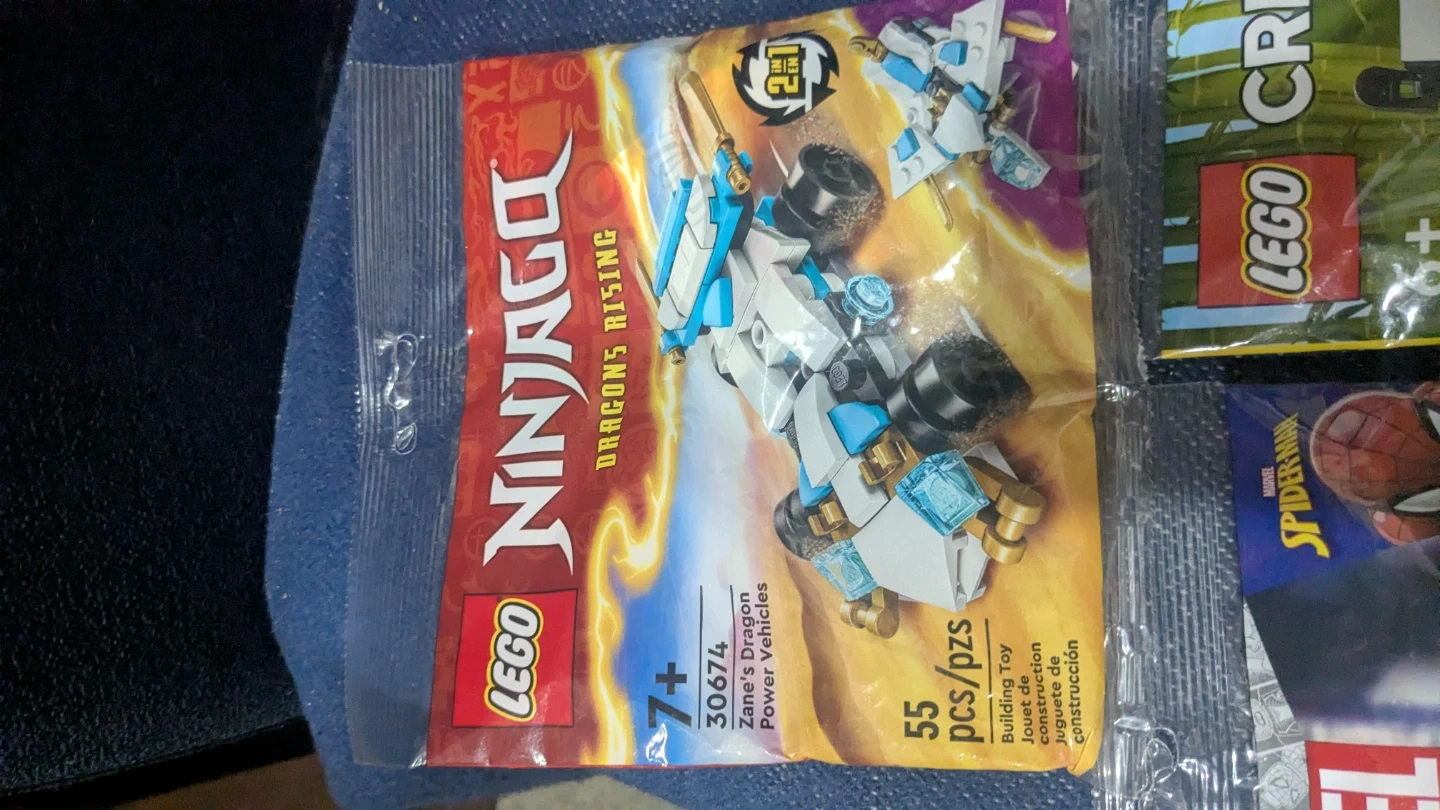 This is a new, sealed LEGO Ninjago polybag set, number 30674. It features Zane's Dragon Power Vehicles from the Dragons Rising theme. Contains 55 pieces.