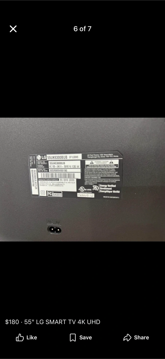 FOR SALE: LG 55" 4K Ultra HD Smart TV with original remote.