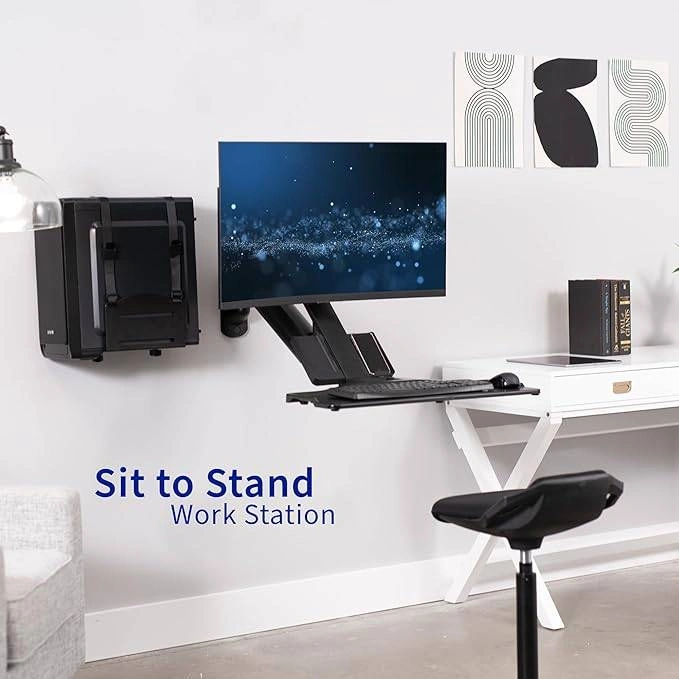 Counterbalance Sit-Stand Wall Mount and CPU Holder, Ergonomic Standing Transition Workstation STAND-SIT1WD