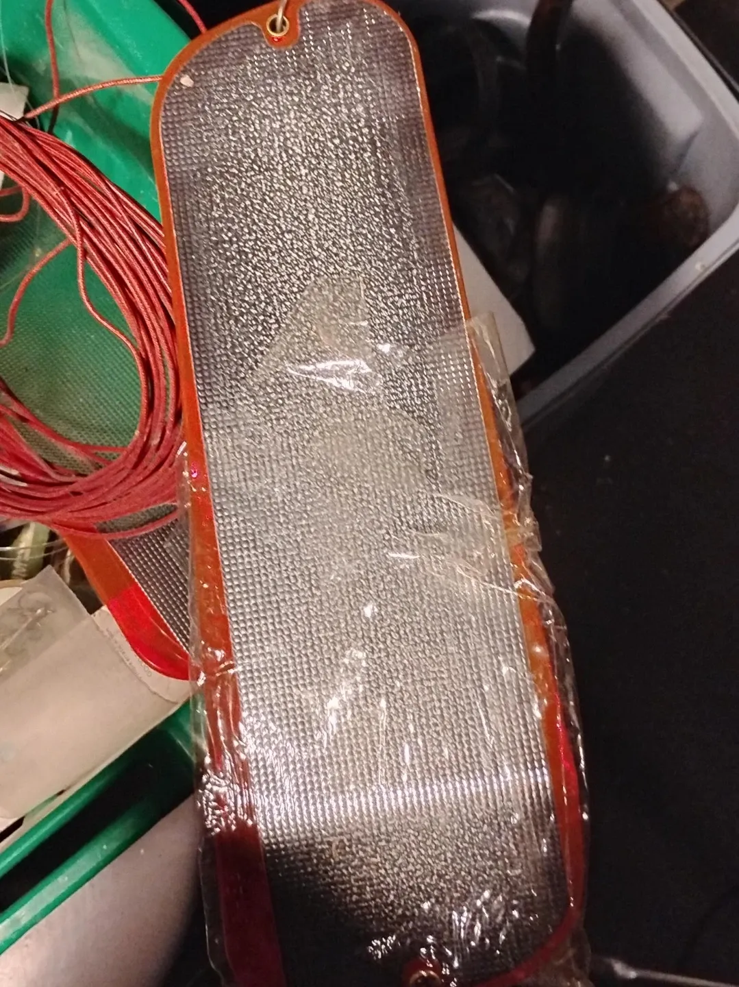 This is a heated car seat cushion with a red trim. It's powered by wires and designed for car use. It's great for staying warm during cold commutes!