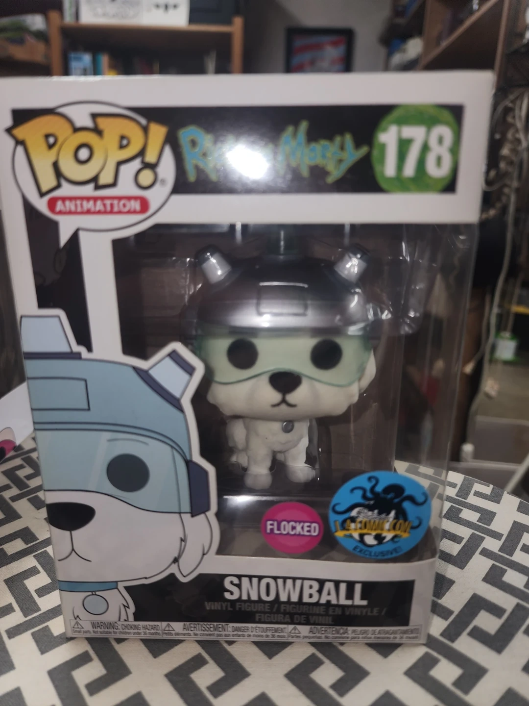 This is a Funko Pop! Animation vinyl figure of Snowball from Rick and Morty. It's a flocked version and a Comic-Con exclusive. Included in original packaging.