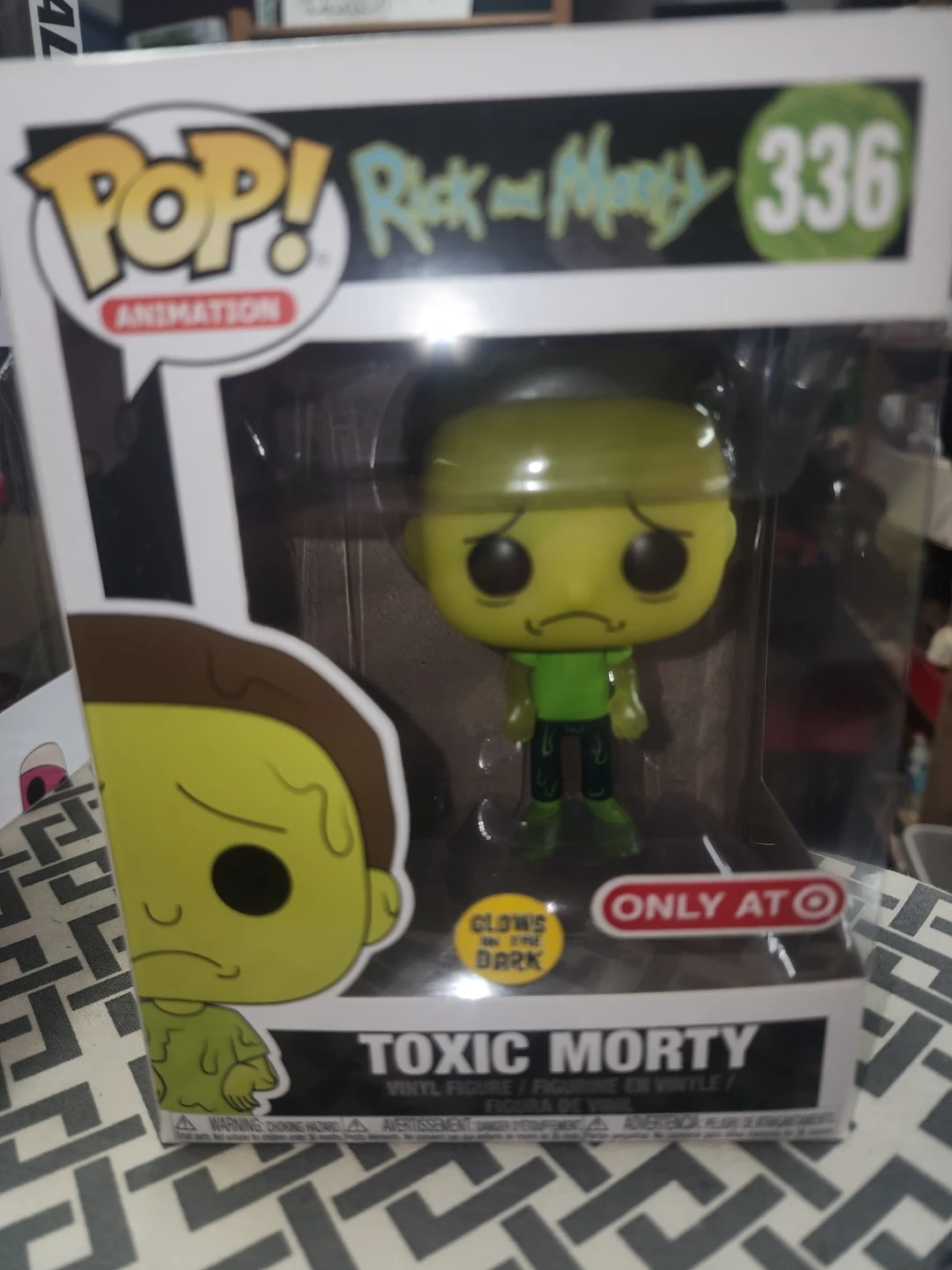 Funko Pop! Animation figure of Toxic Morty from Rick and Morty. This is number 336 in the series. It glows in the dark. It's an "Only at Target" exclusive.