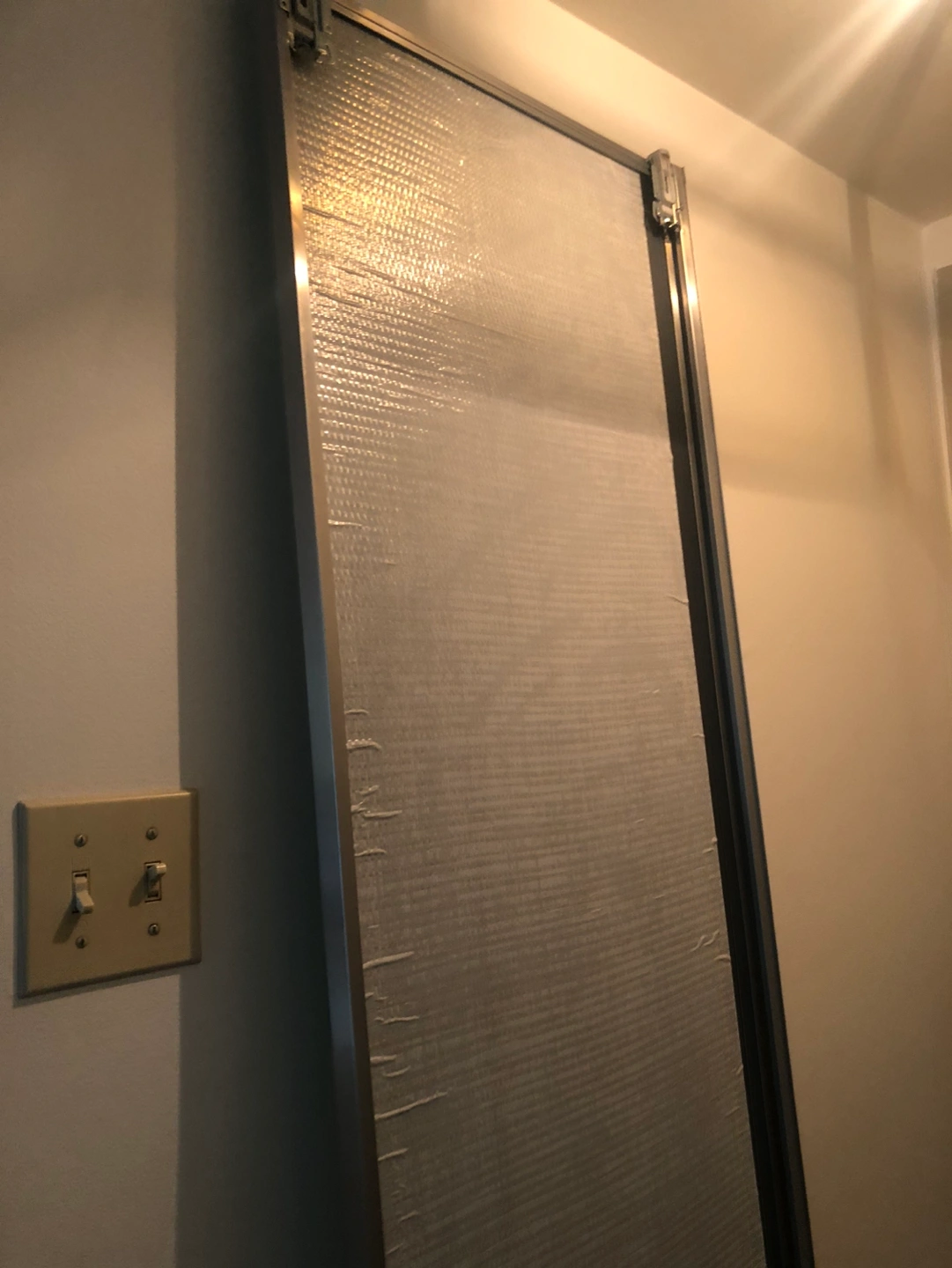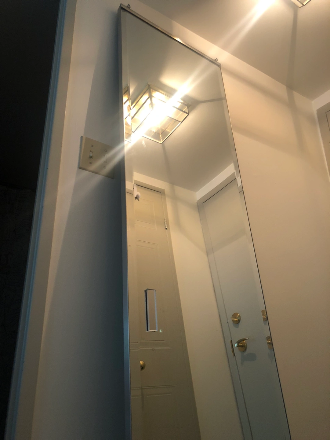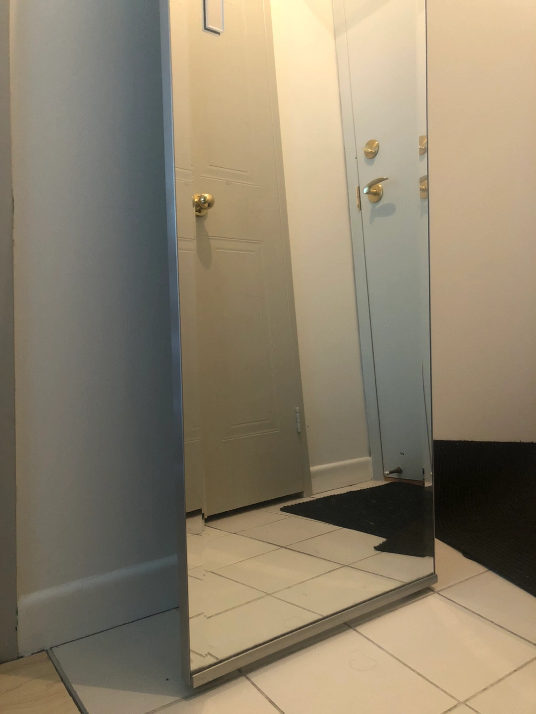 It’s detached from a closet door and leans against a wall. No cracks on it.