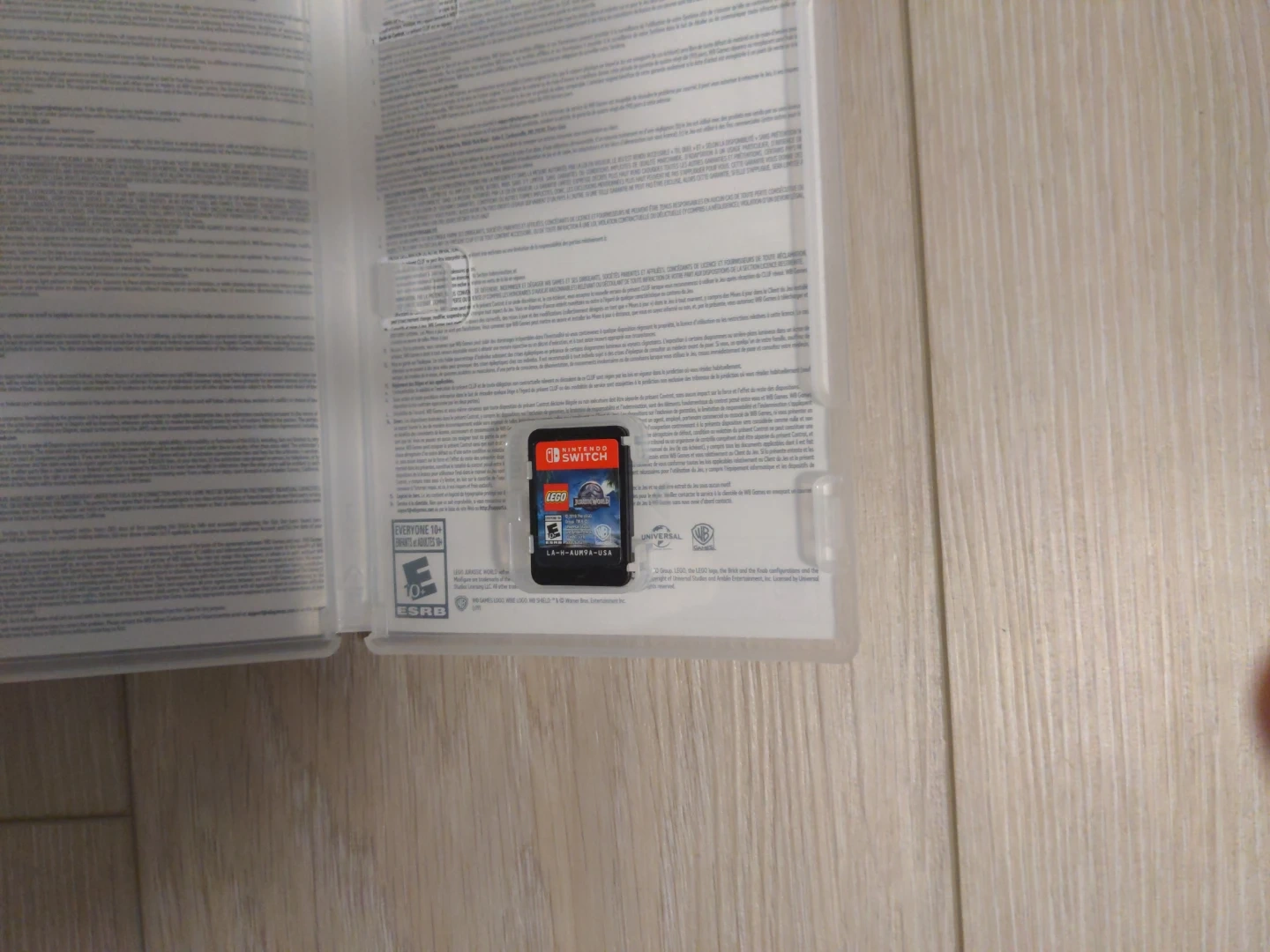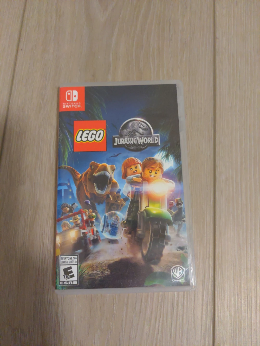 This is the LEGO Jurassic World video game for Nintendo Switch. It features gameplay based on the Jurassic Park film franchise. ESRB rating is Everyone 10+ for fantasy violence.