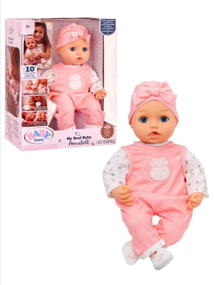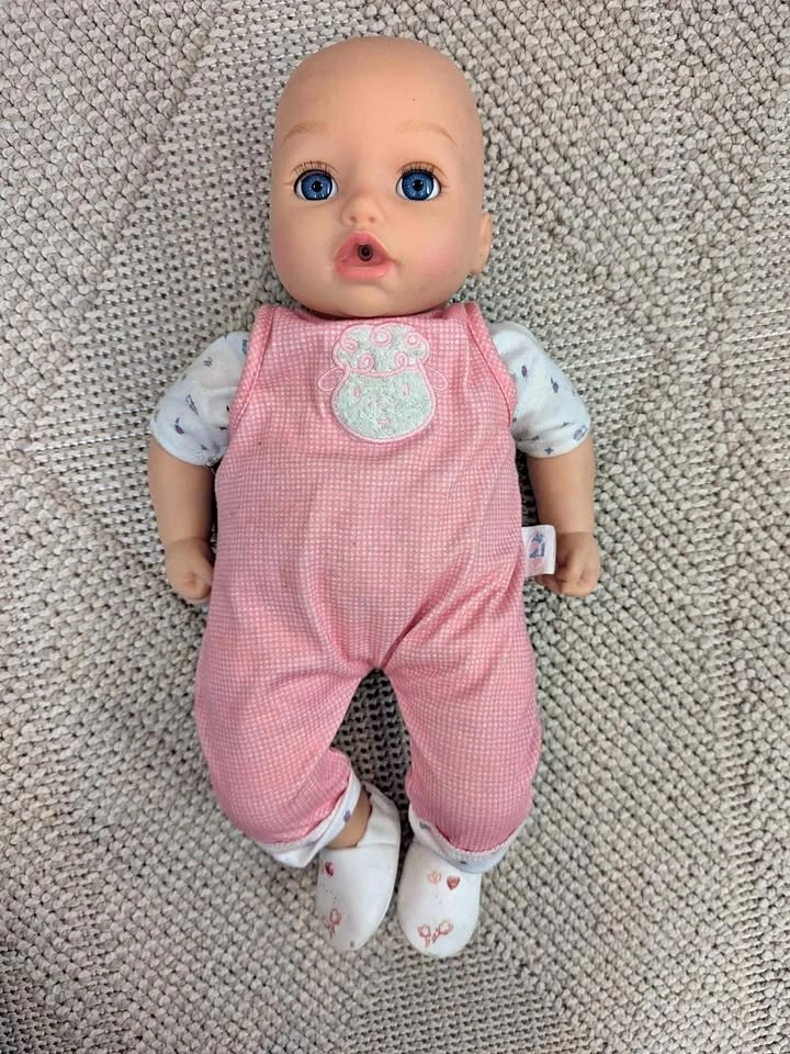 Selling on behalf of my 8yo daughter. This Baby Born Annabell doll makes noises, can drink, and urinate. It can wear newborn sized diapers. We no longer have the bottle for it. Original retail price was $59.97 + tax. Asking $10. Pickup in Port Hope.
