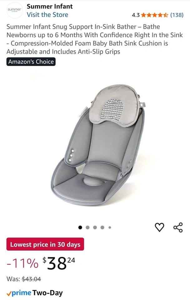 Adjustable in-sink baby bath for newborns up to 6 months. Compression-molded foam with anti-slip grips for safe, comfortable bathing. Smoke-free, pet-free home. Pickup in Port Hope.