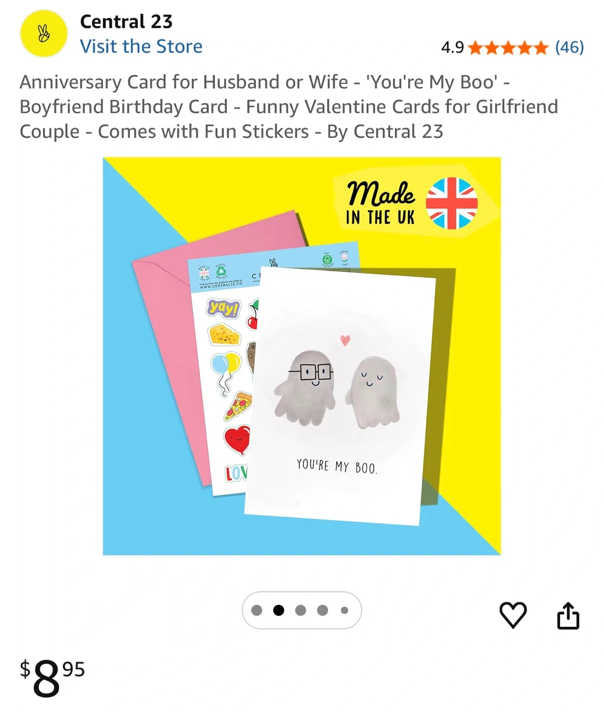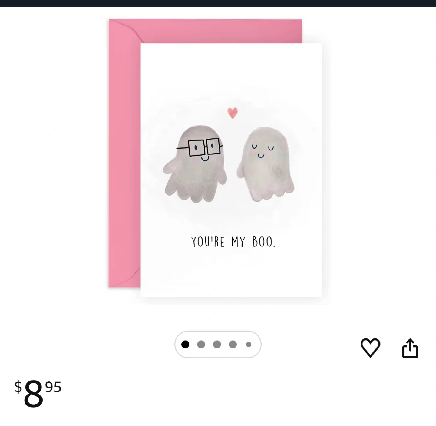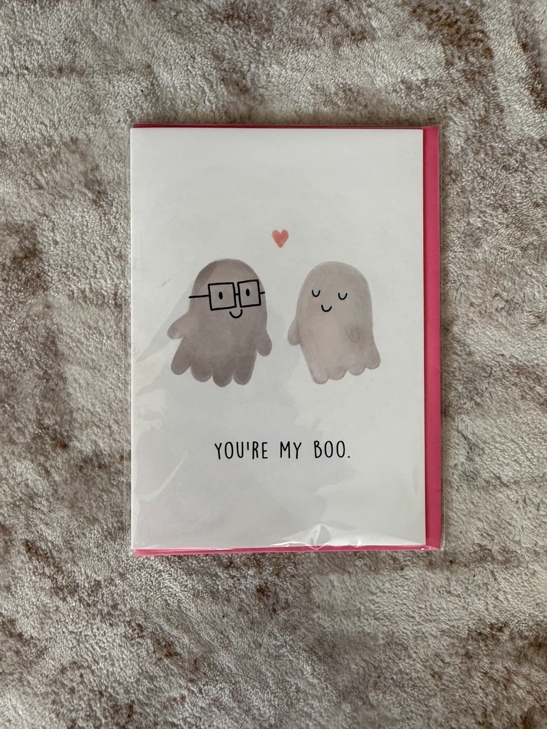 A cute greeting card featuring two ghosts with the text "YOU'RE MY BOO." It comes with a pink envelope. Perfect for expressing affection to someone special!