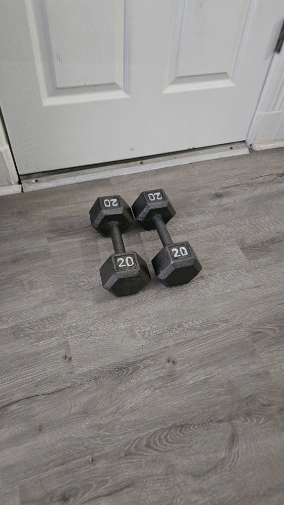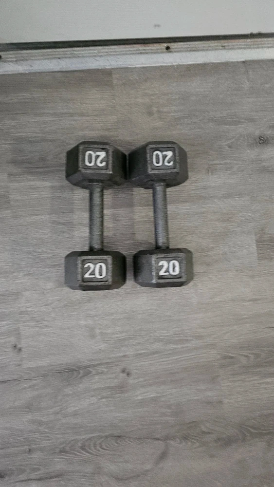 Selling a pair of 20 lb hex dumbbells. They're made of cast iron with a comfortable grip handle. Great for home workouts!