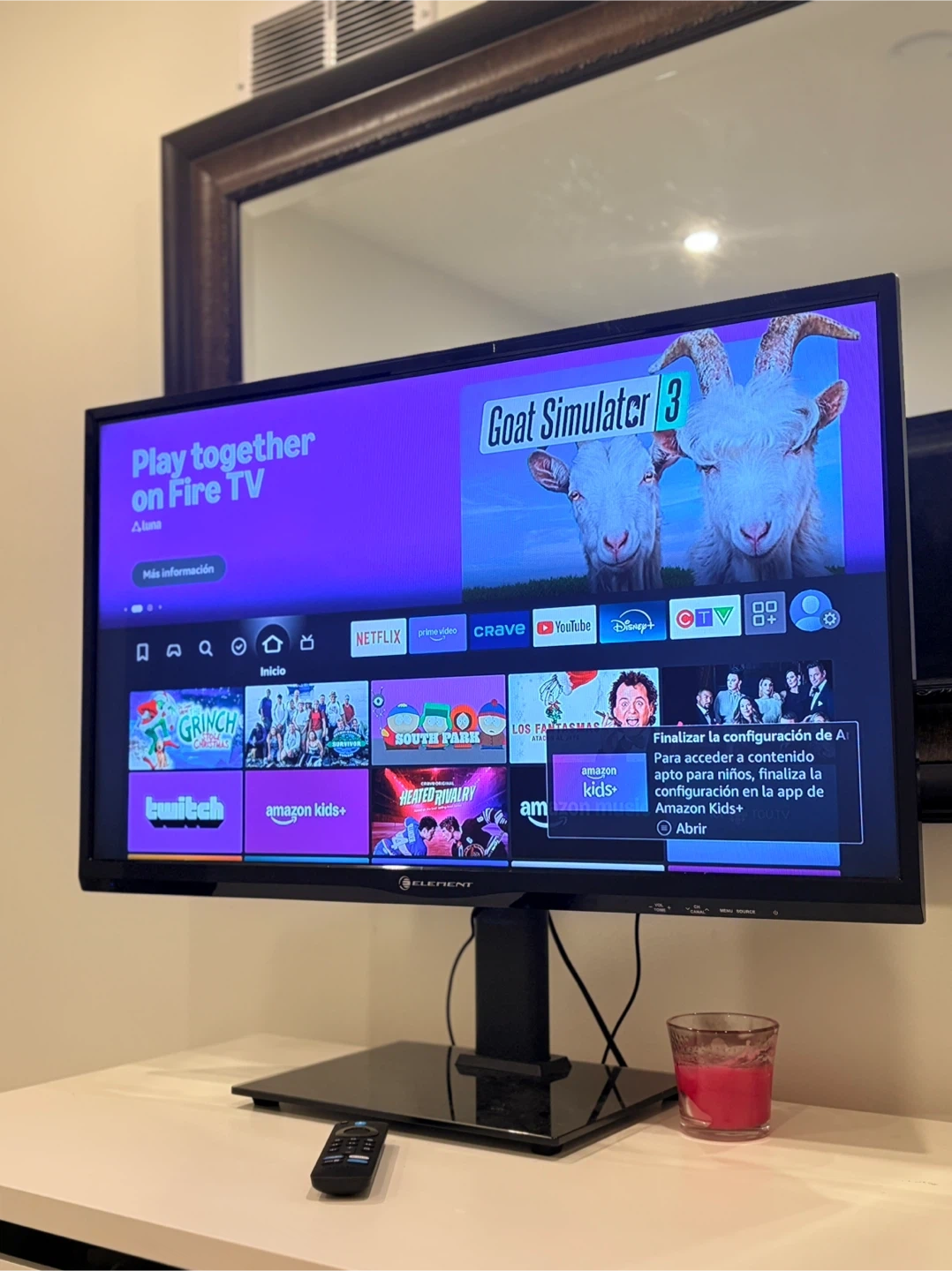 Element 32-inch smart TV with Fire TV built-in. It features a high-definition display for streaming your favourite shows. Access apps like Netflix, Prime Video, YouTube, and more directly from the home screen. This TV is great for smaller spaces or as a secondary screen.
