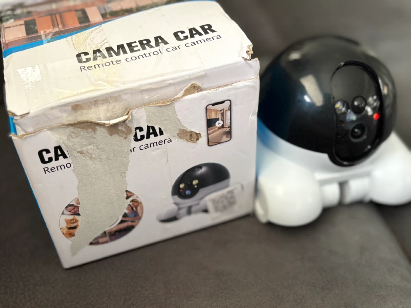 This is a remote control car camera! It's a fun gadget for remote viewing or playing. It has a rotatable camera head for a wider view.