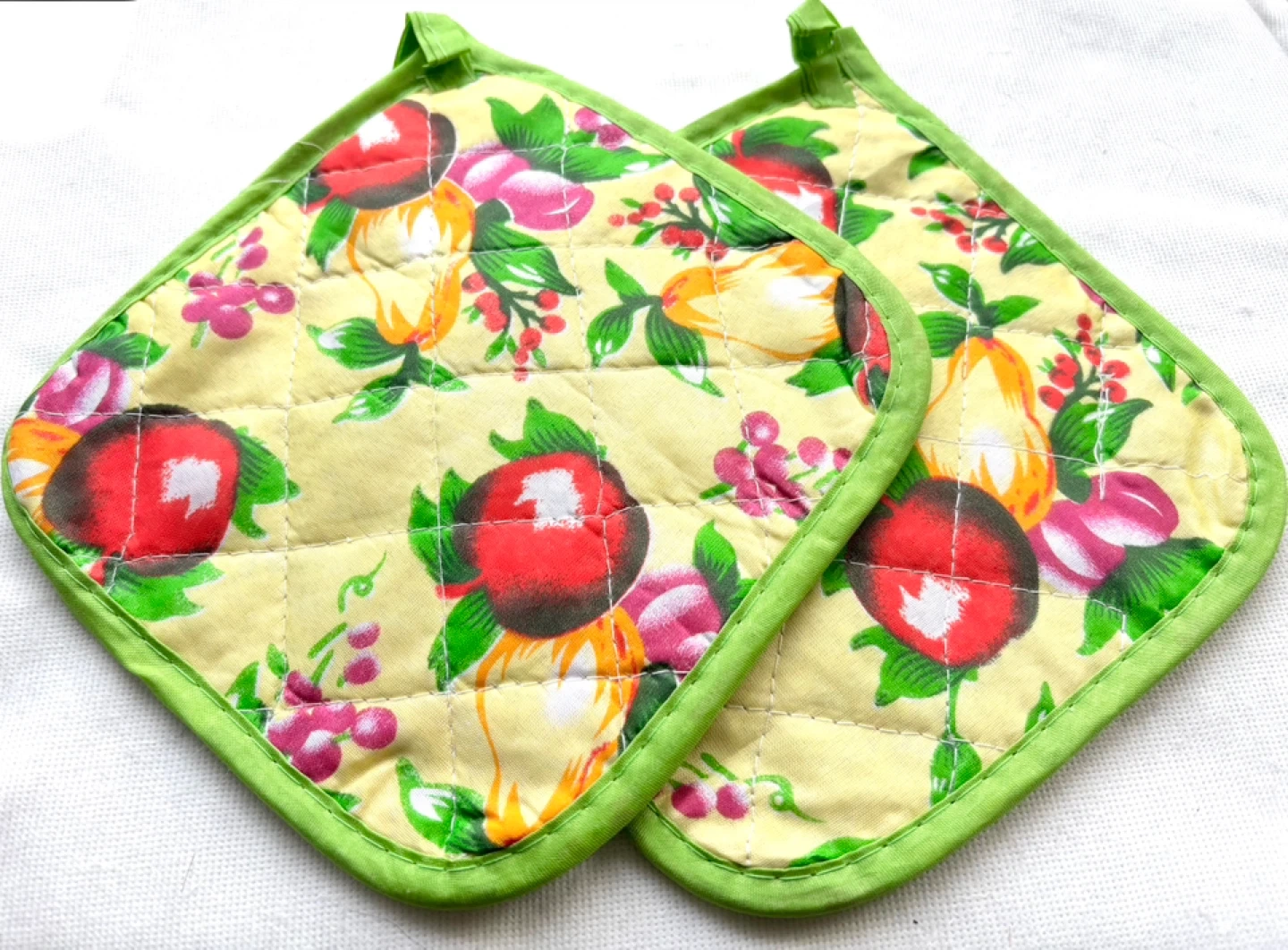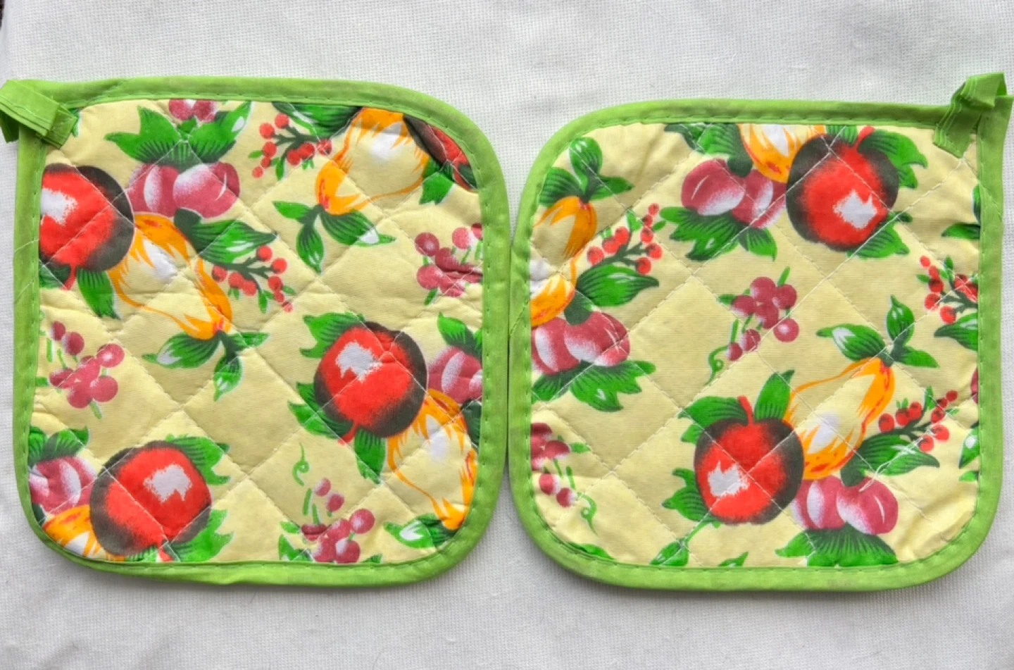 Set of 2 Quilted Heat-Resistant Potholders – Fruit & Floral Print