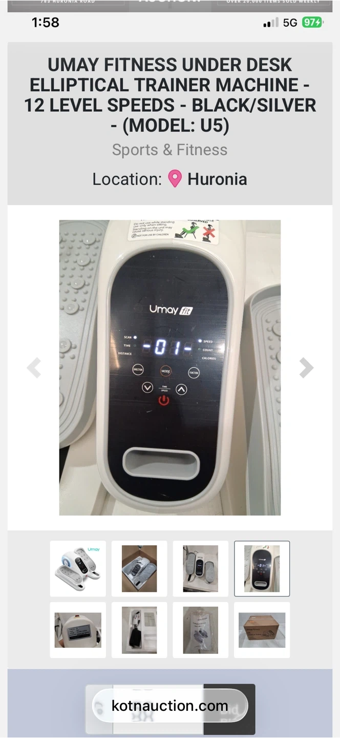 This UMAY Fitness under desk elliptical trainer offers 12 levels of resistance. It's white with a model number U5. It's compact and suitable for use with your desk or while watching TV
