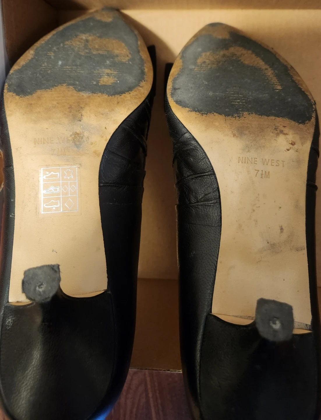 As you can see in the pictures, the front of the shoe is not in good condition, and the heel is very worn and needs to be replaced.