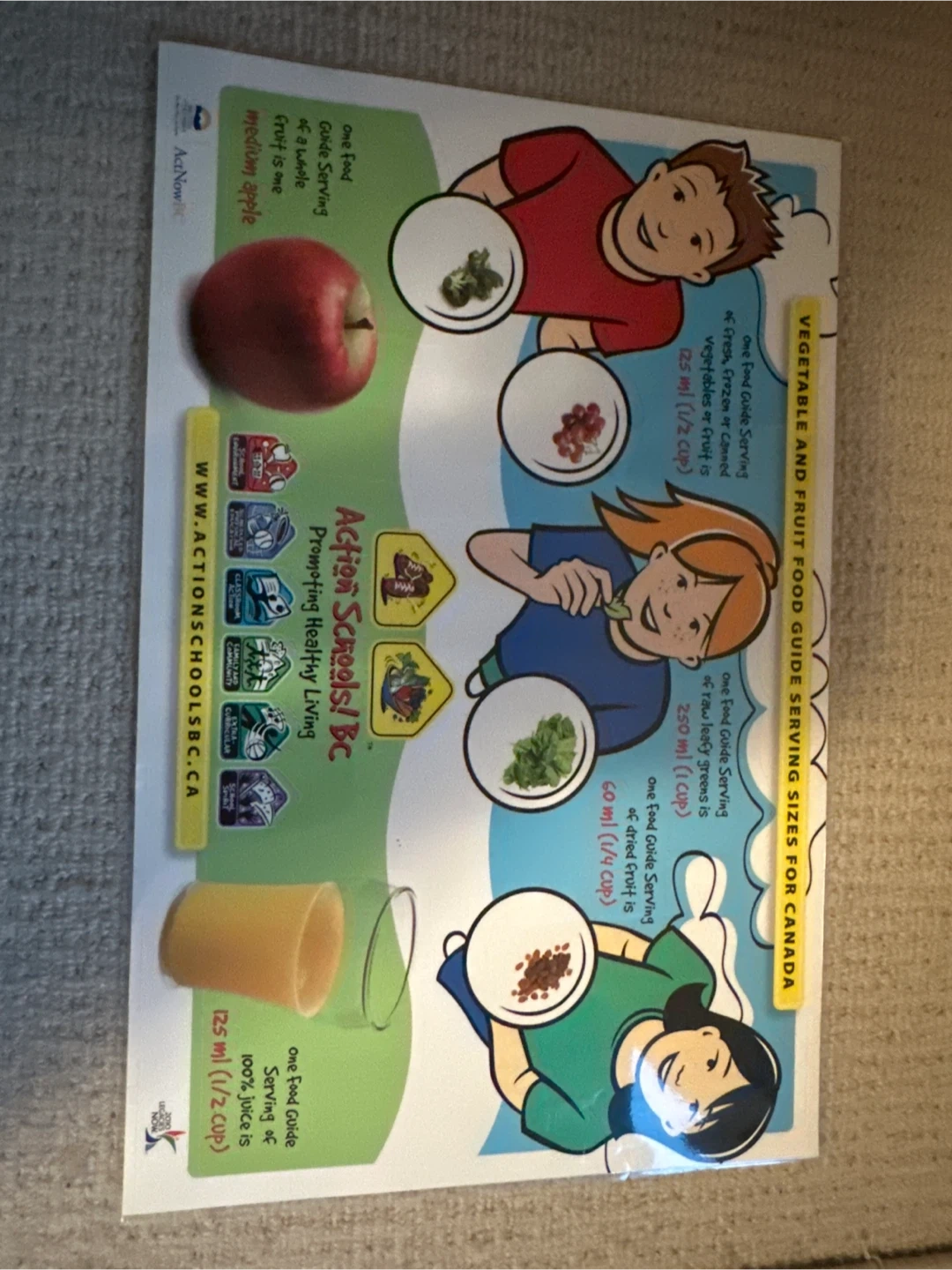 This poster set from Action Schools! BC covers the four food groups with helpful visuals. It also details serving sizes for vegetables, fruit, and grains, along with juice. It's a great visual aid for learning about healthy eating!
