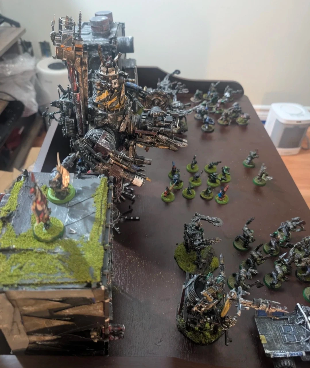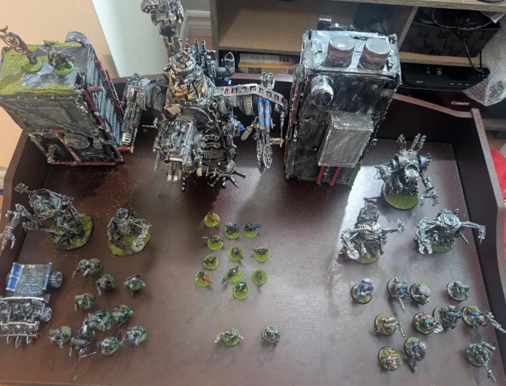90's style retro Ork Army! This army comes with an eavy metal Mad Doc and Mek boy! Markari and a custom Ghazkul. 2 Ork Town Buildings. 2 Metal Dreadnoughts and a Deff Dread and a metal Killa Kan. 10 Gretchen, 10 Ork Boyz, 10 Kommandoz, a custom ork Traktor beam, a War Trukk and the exclusive Orktober 2025 Ork-o-Tron 40 000 custom Stompa.