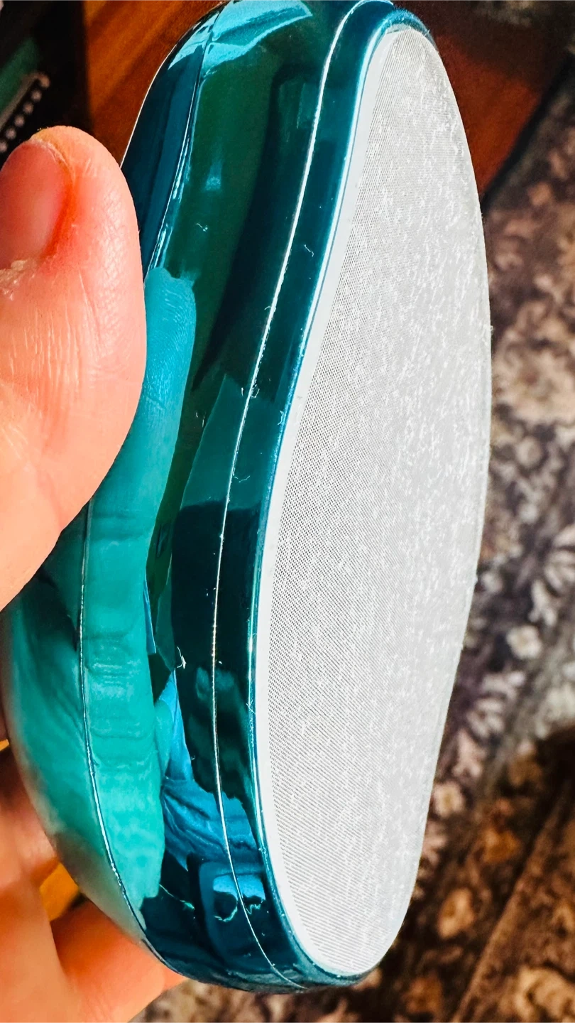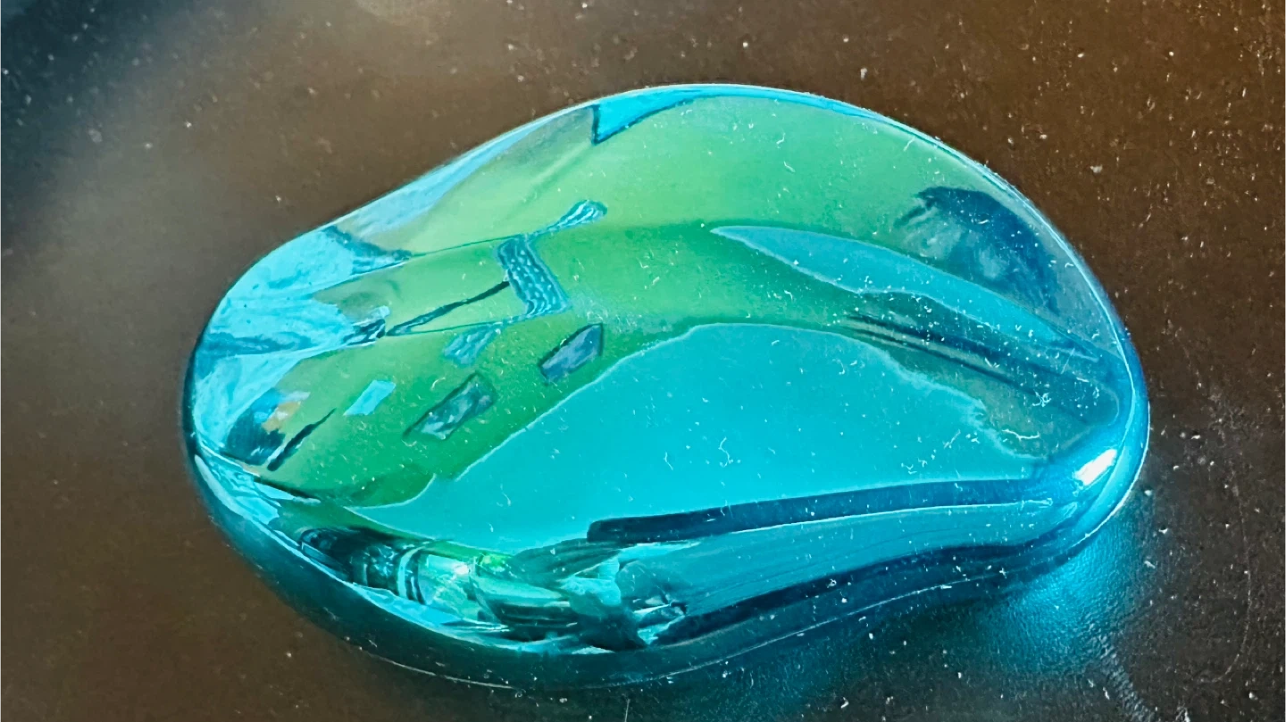 This crystal hair eraser tool features a smooth surface and a textured side for hair removal. It measures 11cm by 4.3 inches in length and 2.5cm or 1 inch in thickness. The durable plastic casing is a vibrant blue color. This device is perfect for achieving smoother skin!