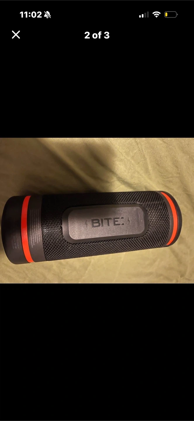 This Bushnell Golf portable Bluetooth speaker is black with orange accents. It's designed for outdoor use and offers a compact, durable solution for listening to music on the course. Connect your device easily and enjoy your tunes!