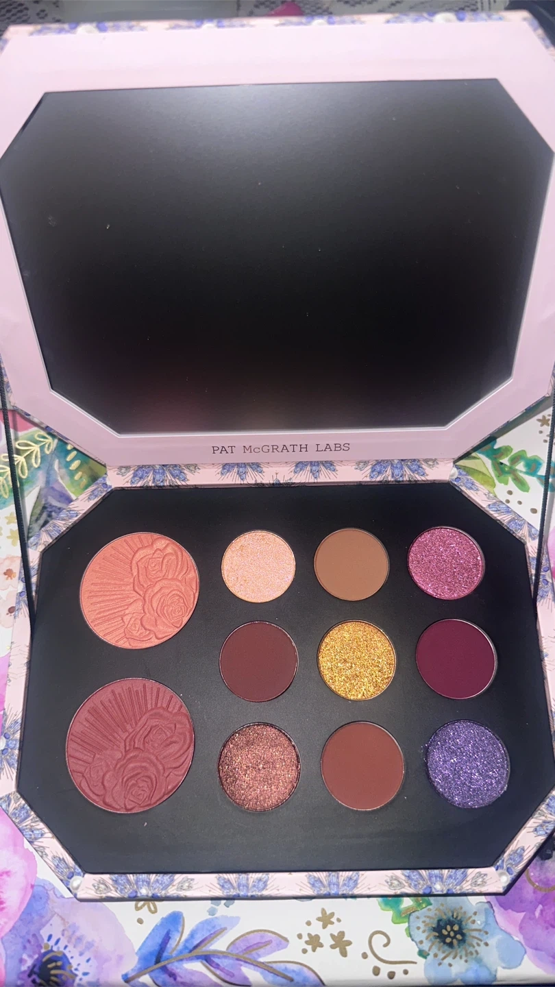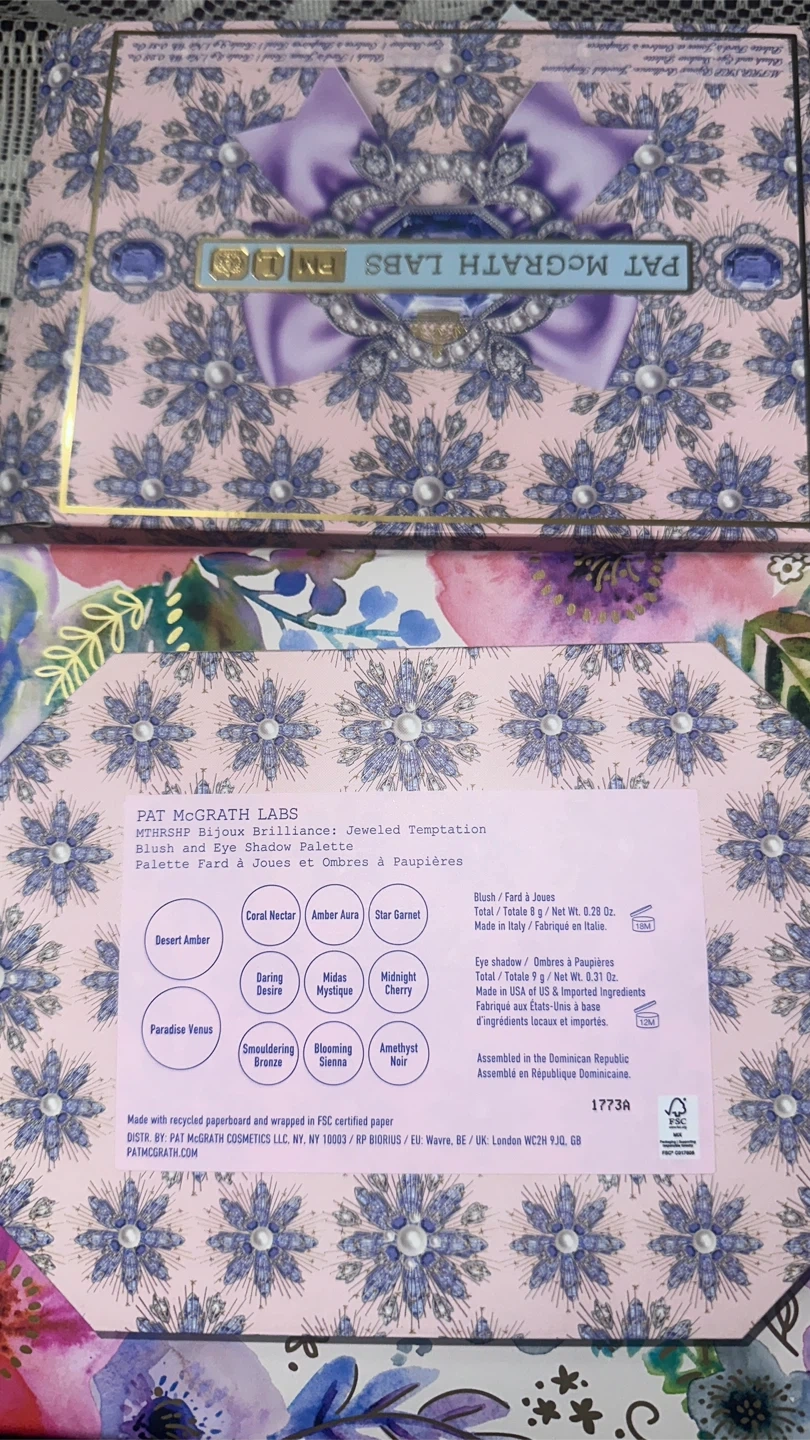 This is the Pat McGrath Labs Mothership Eyeshadow Palette in 'Jeweled Temptation'. It includes blush and eye shadow shades. Total weight is 0.28 oz for blush and 0.31 oz for eyeshadow.