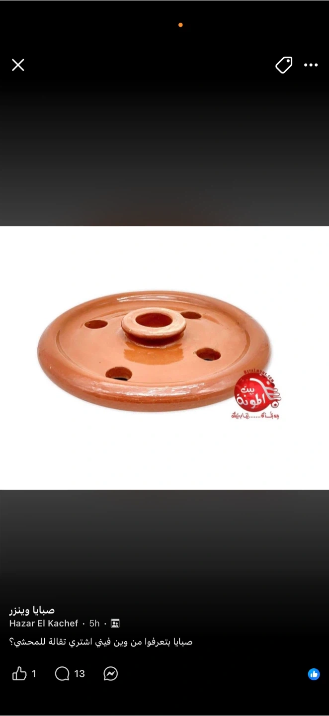 This is a terracotta lid designed for stuffed vegetables, often used for cooking mahshi. It features a central hole and several smaller perforations to aid in even cooking. Made of natural clay.