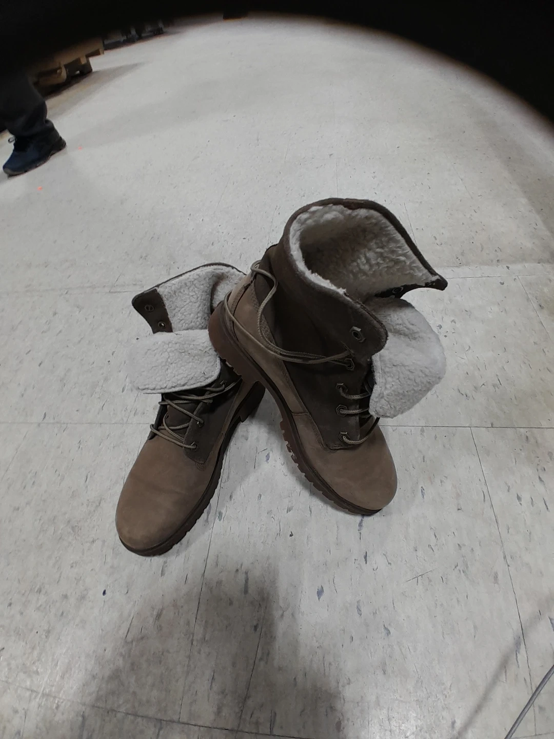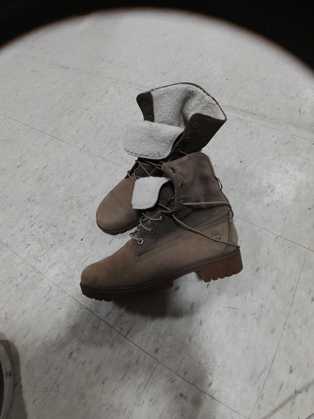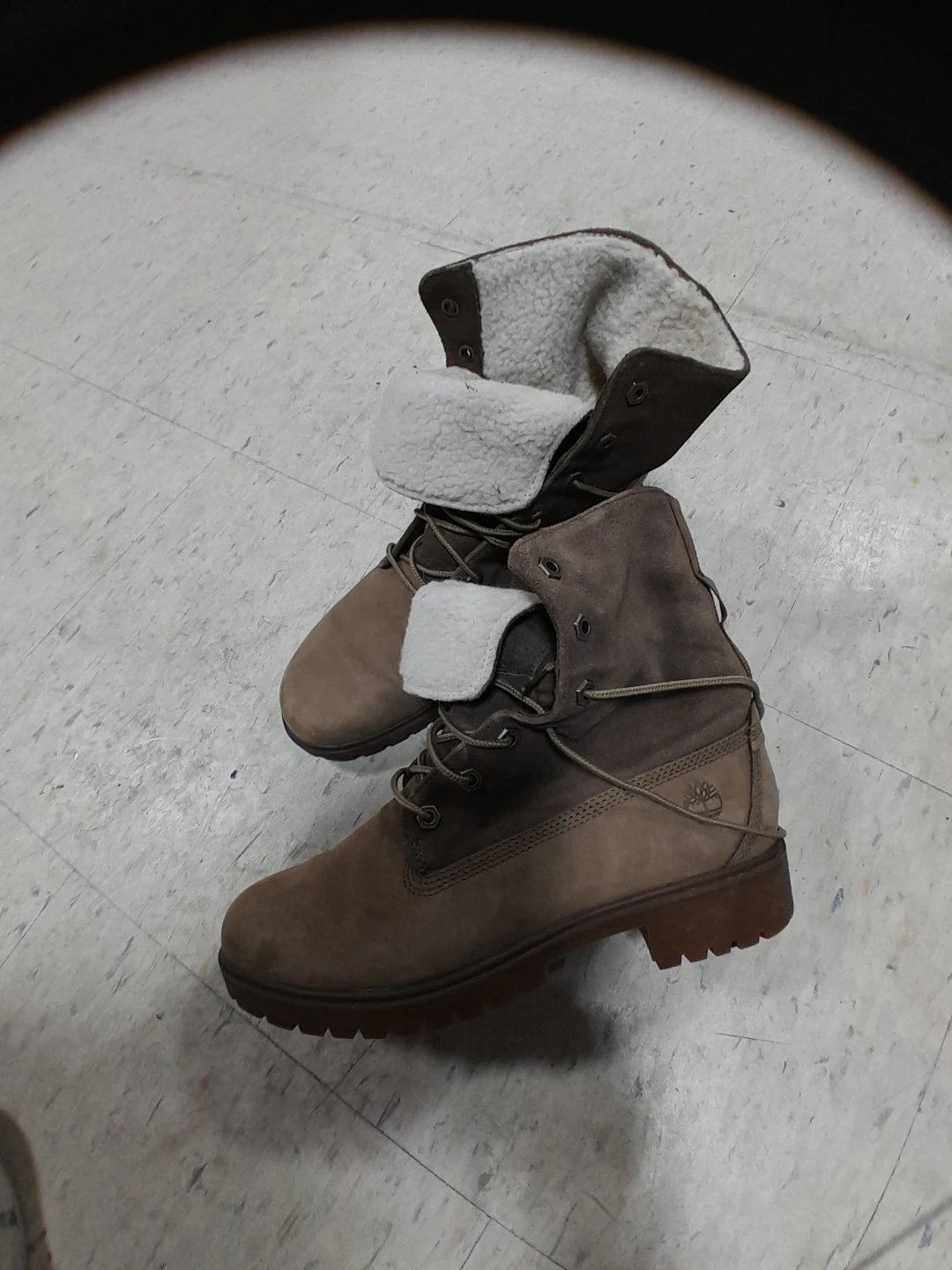 Timberland women's boots with a cozy fleece lining. These boots are a stylish brown colour and feature lace-up closure. They're perfect for keeping your feet warm during colder weather! Size 8.5