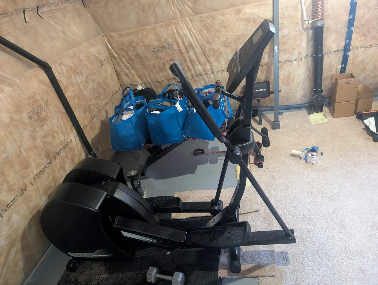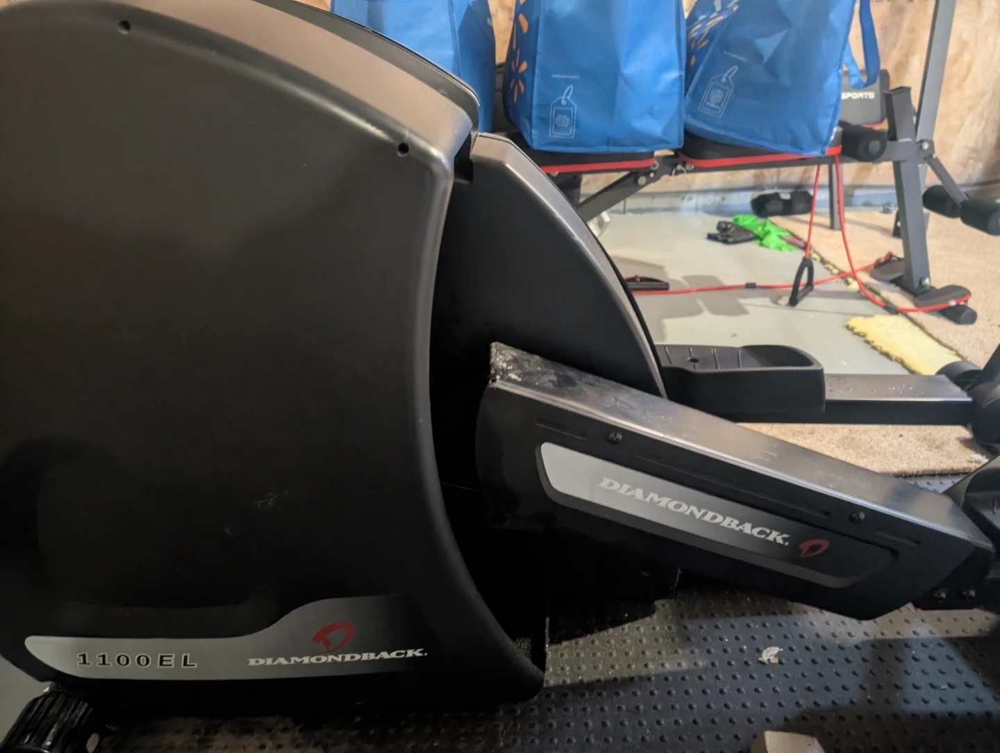 This is a Diamondback 1100EL elliptical machine. It has multiple manual programs and a heart rate monitor. The display shows time, distance, speed, and calories burned.
