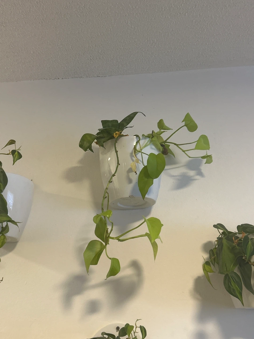 Rehoming this part those plant for free there is another plant in the pot as well. The wall hanging basket is not included, but I have another pot. I can put them in for you.