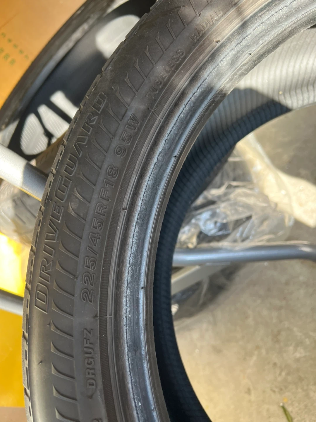 Buy & SellGoodyear DriveGuard Tires (225/45R18 95W)Goodyear DriveGuard Tires (225/45R18 95W)$79Set of two Goodyear DriveGuard tires. Size is 225/45R18 95W. Radial tubeless tires. Great for all seasons!WHERE TO MEETLover Lonsedale North VancouverView MapSELLERAsaCentral Lonsdale100 reviews0 chats·0 favorites·28 viewsSEND CHAT TO SELLERHi Asa! I’m interested in your listing.Hi Asa! I’m interested in your listing.Get the Karrot app to chatSign In to chat