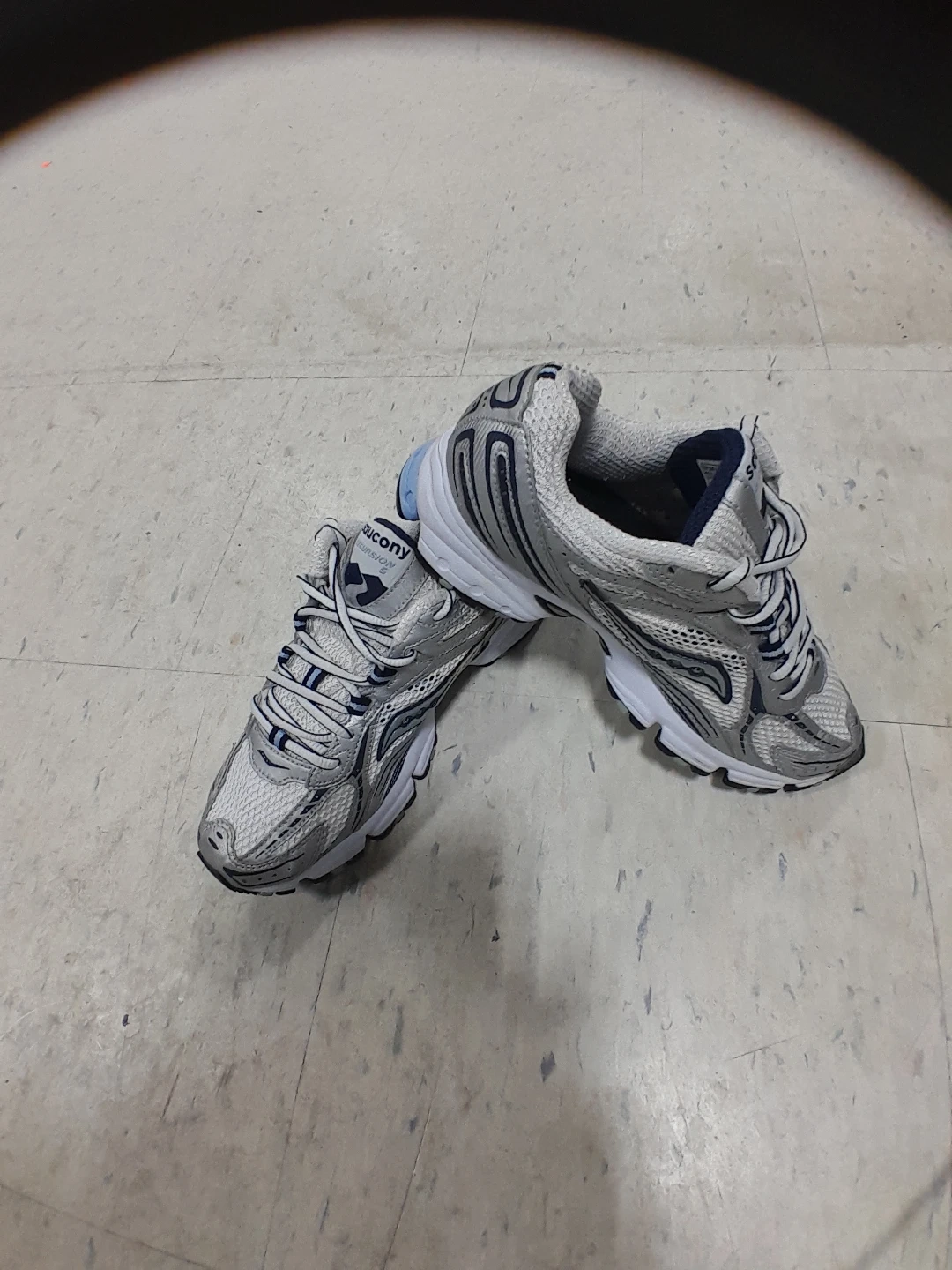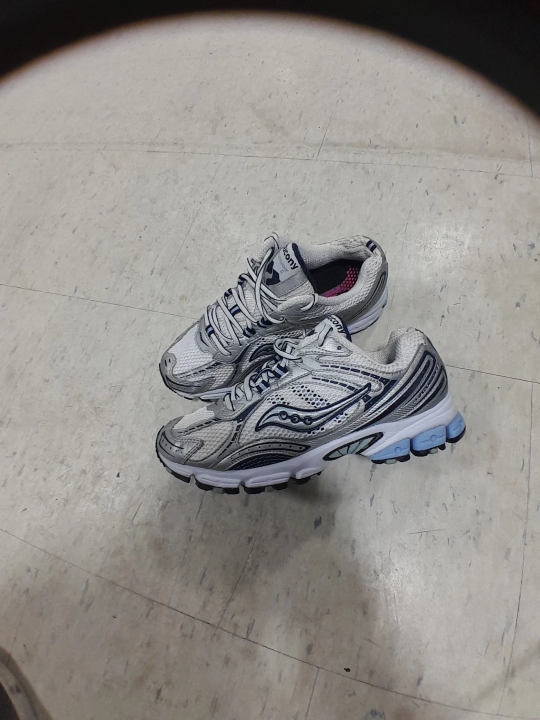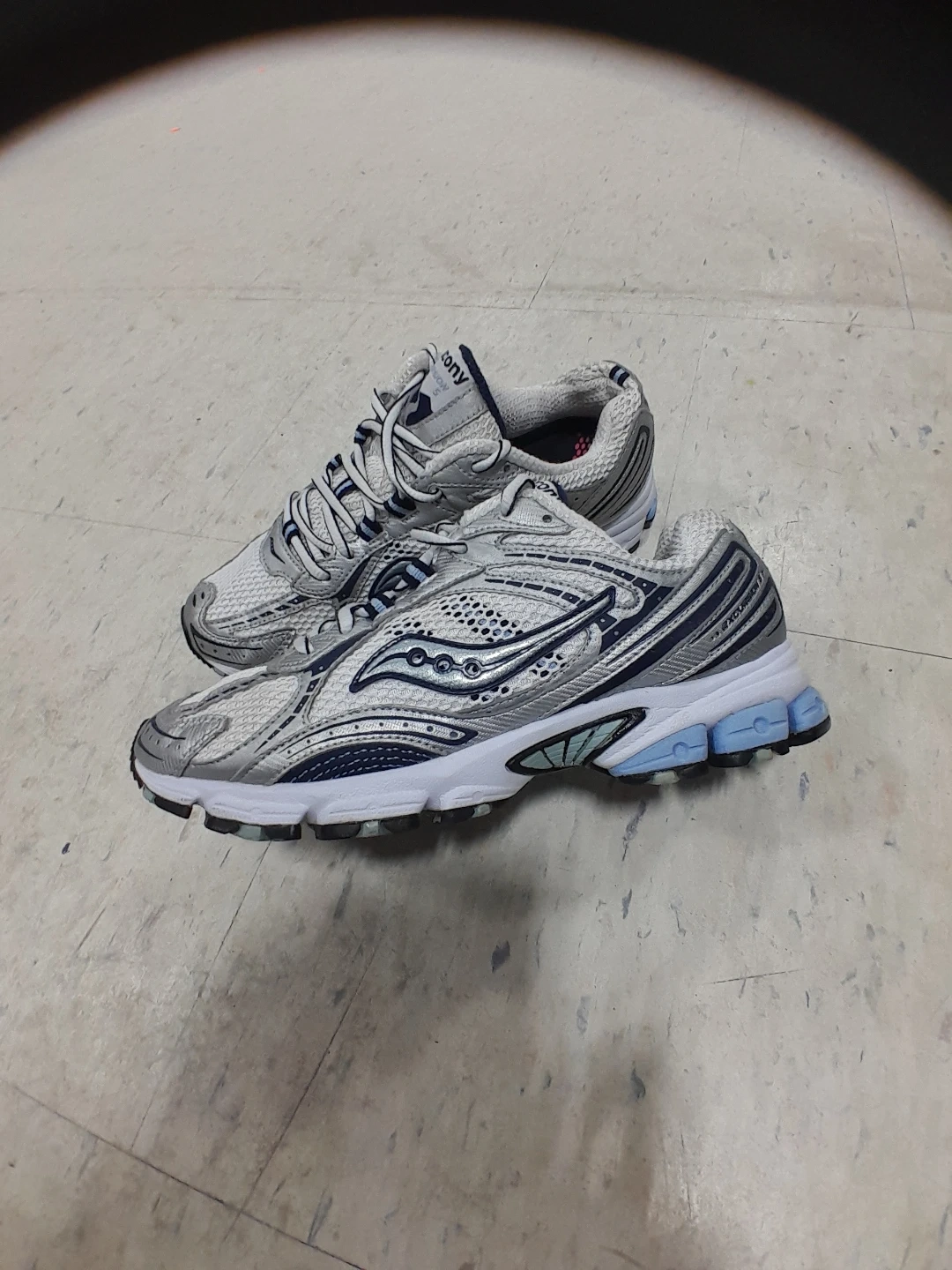 Saucony Excursion TR trail running shoes. Silver and navy colourway. These shoes are great for hitting the trails. They feature a durable mesh upper for breathability women's size 9