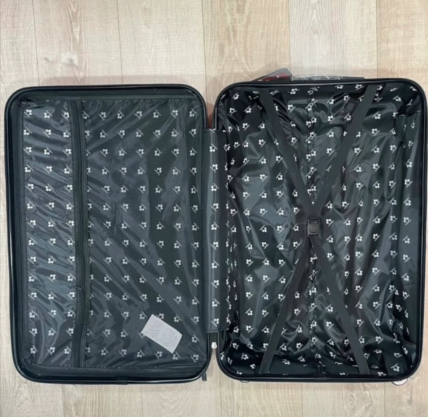 Selling a brand new 3-piece luggage set in a lovely purple colour! This set is perfect for all your travel needs. Each suitcase has a retractable handle and wheels for easy maneuvering. The interior is lined with a patterned fabric and includes straps to keep your belongings secure. They're brand new and ready for your next adventure