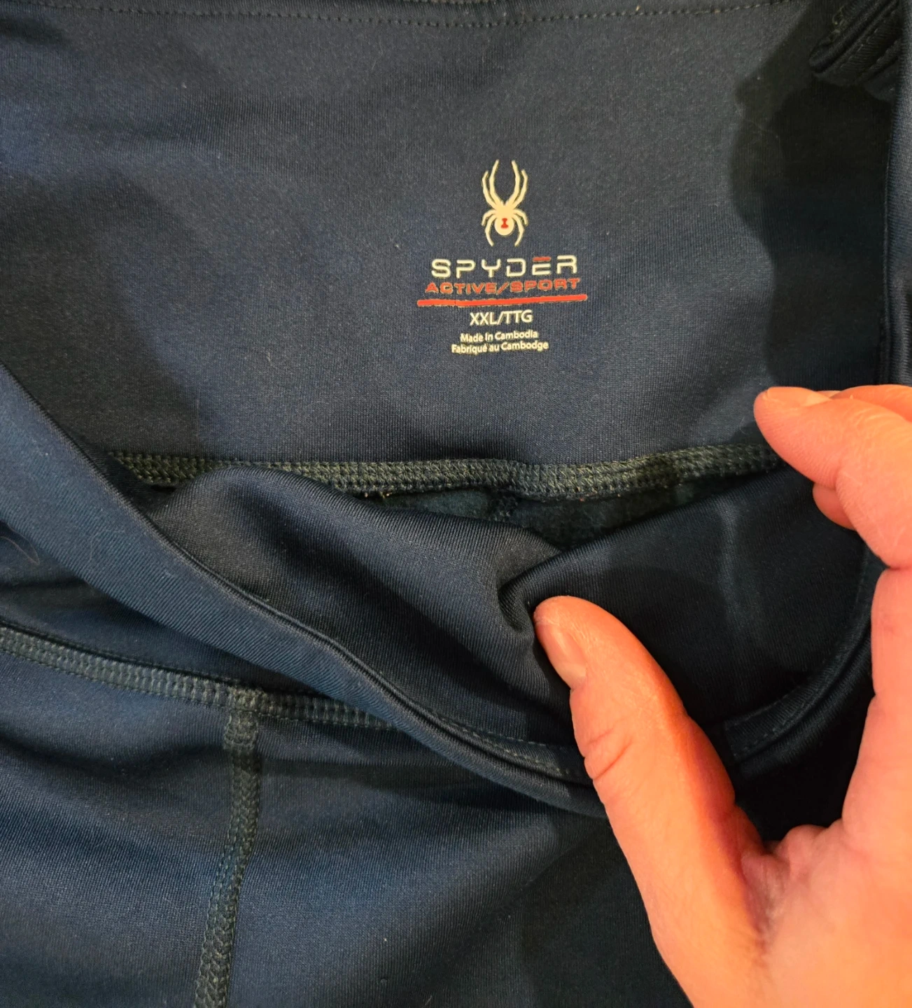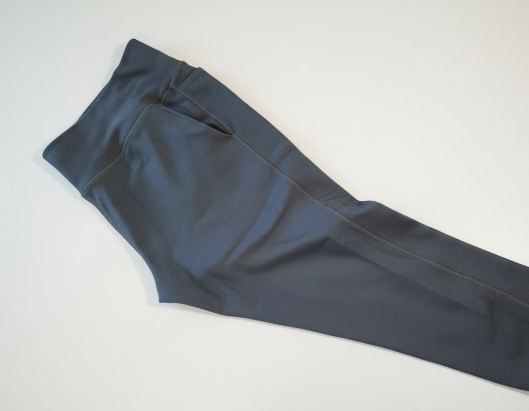 Spyder Active/Sport leggings in a deep navy blue. These are a size XX-Large. They feature side pockets for convenience. Made in Cambodia.