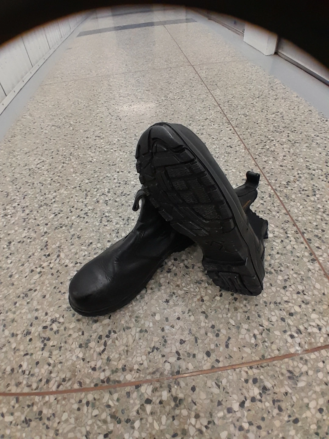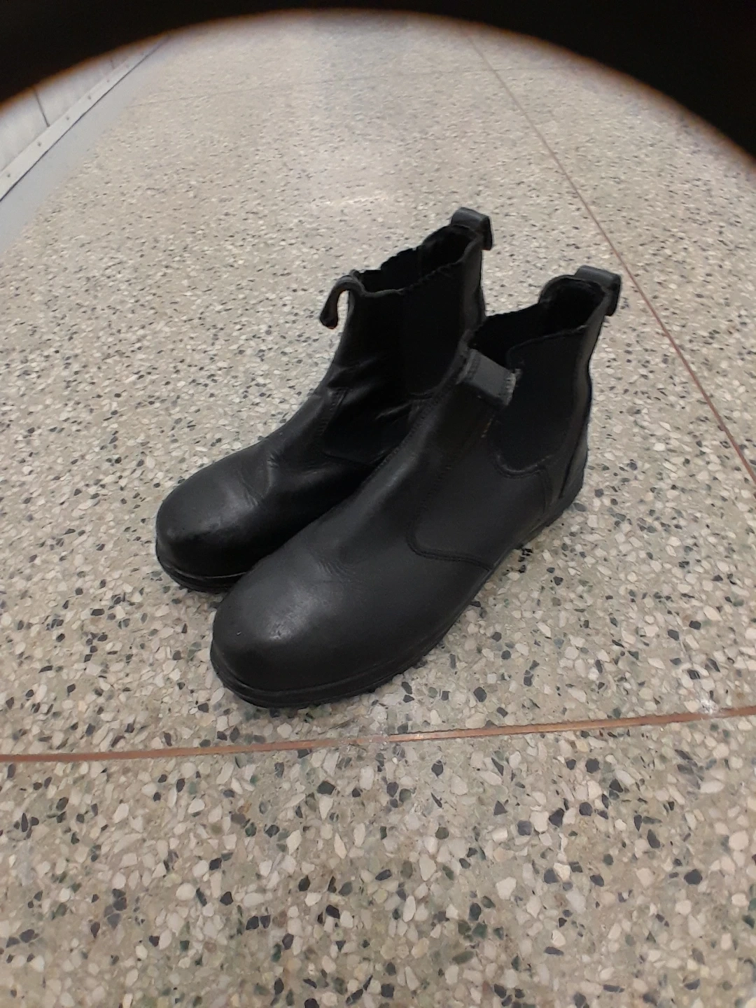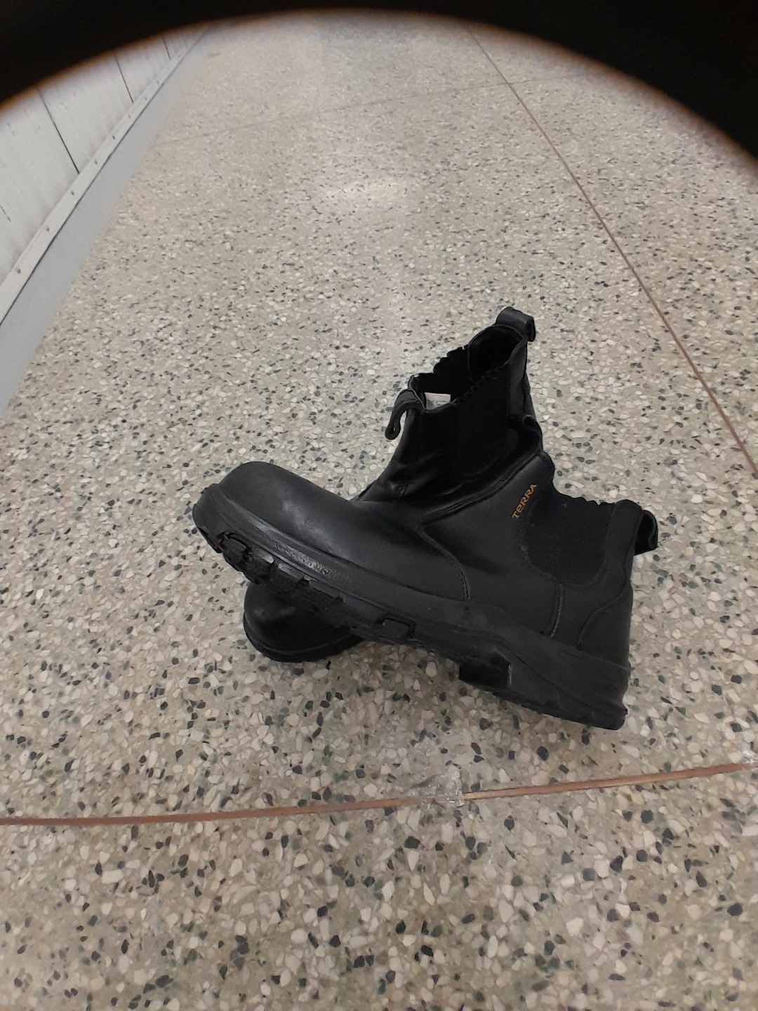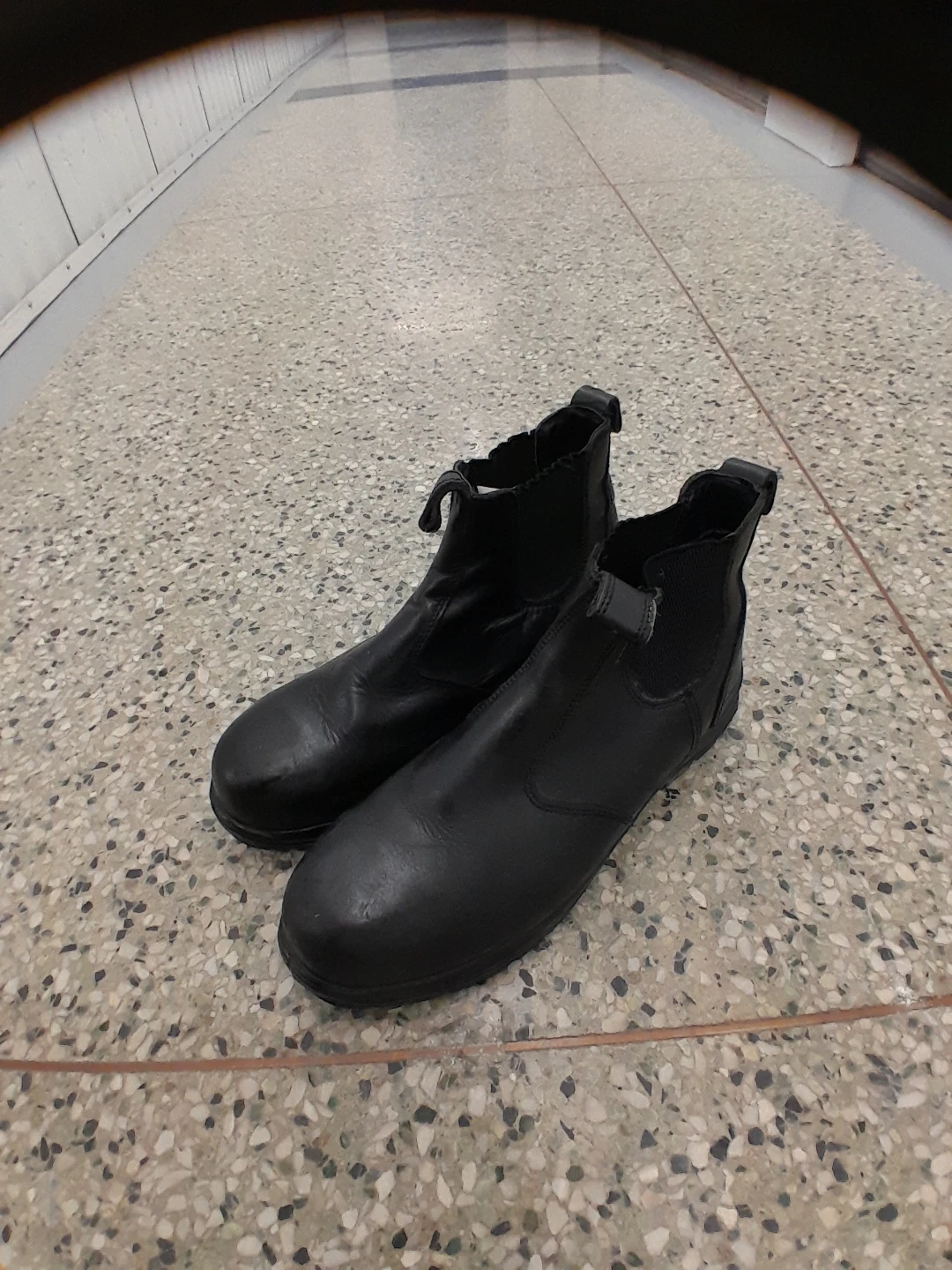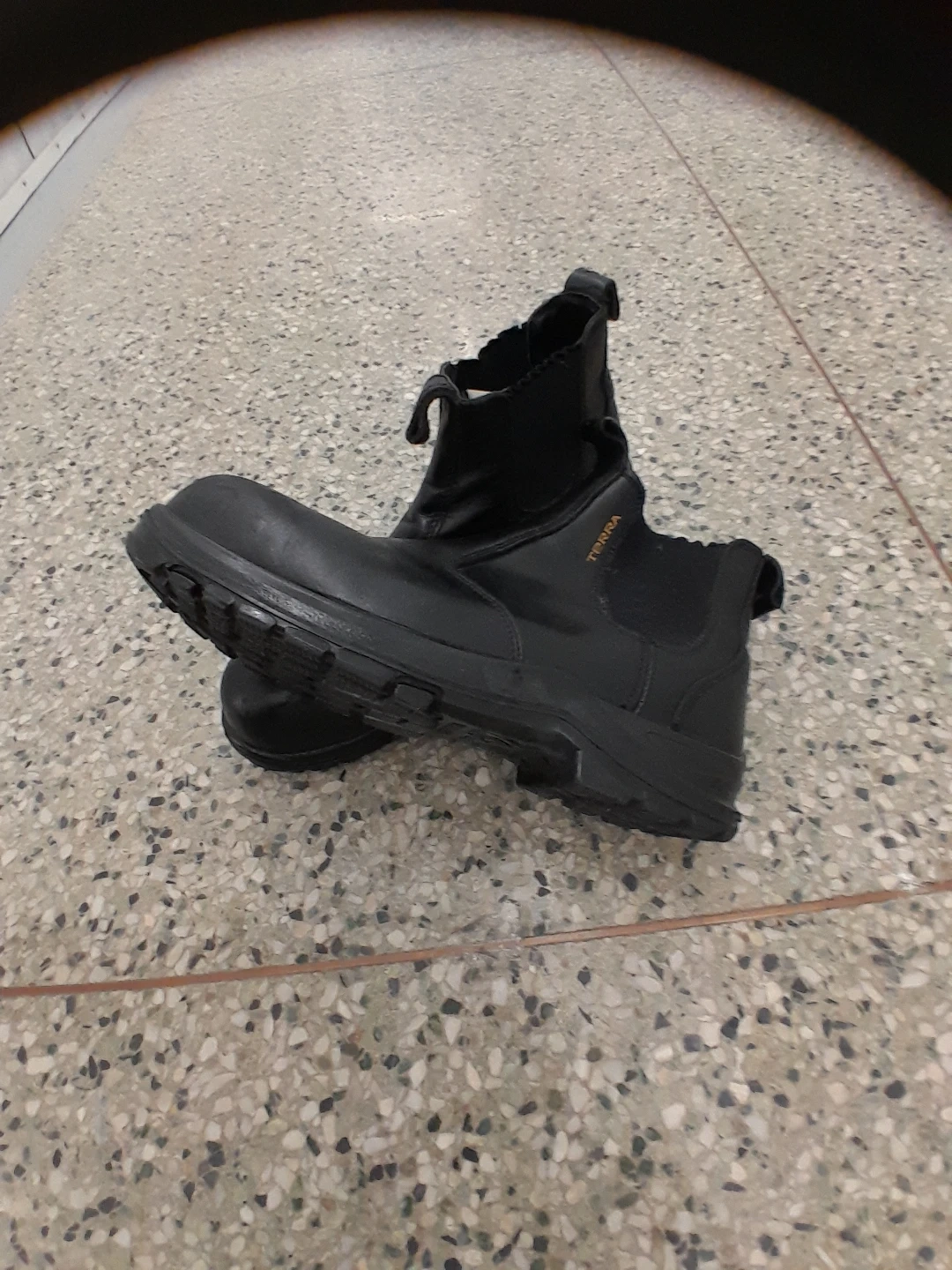 Black Terra Chelsea style Safety boots. These boots have a durable construction with elastic side panels for easy on and off. They're made for work environments. Safety toe footwear. Men's size 12