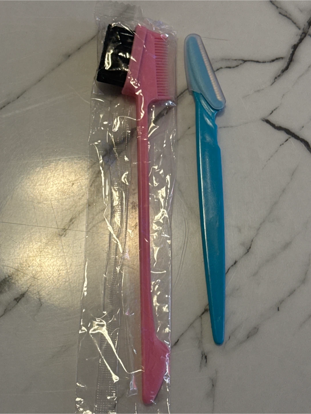 This set includes a precision eyebrow razor and a dual-sided comb and brush tool. The razor has a protective cap for safety. The comb helps shape brows while the brush grooms them.