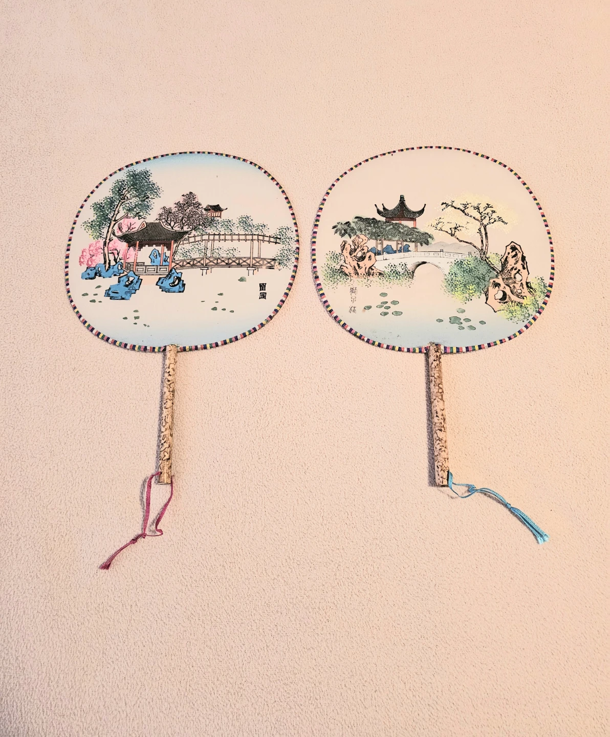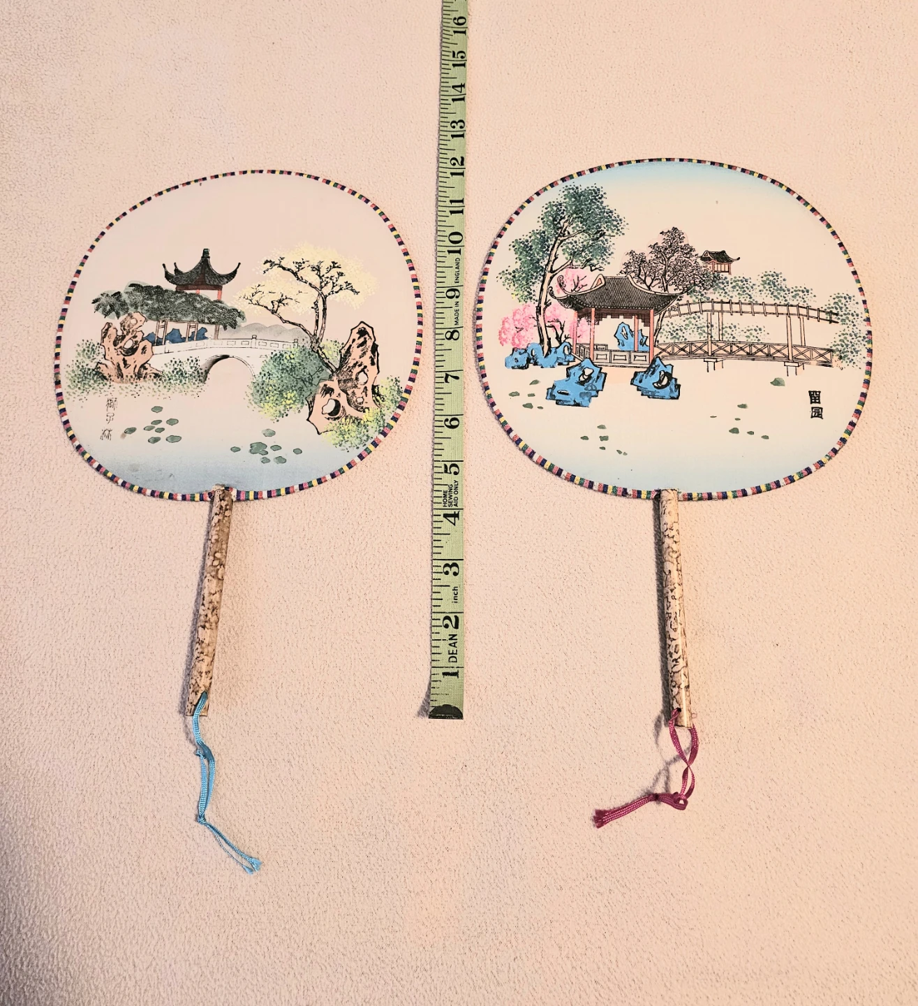 Beautiful, hand-painted vintage fans. They feature traditional Chinese garden scenes. Each fan has a bamboo handle. These make a lovely decorative accent piece! $2 Each
