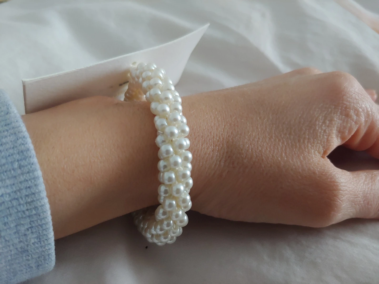 This bracelet is made with glass pearls. It's a lovely accessory for any occasion. This bracelet is stretchy. Brand New.