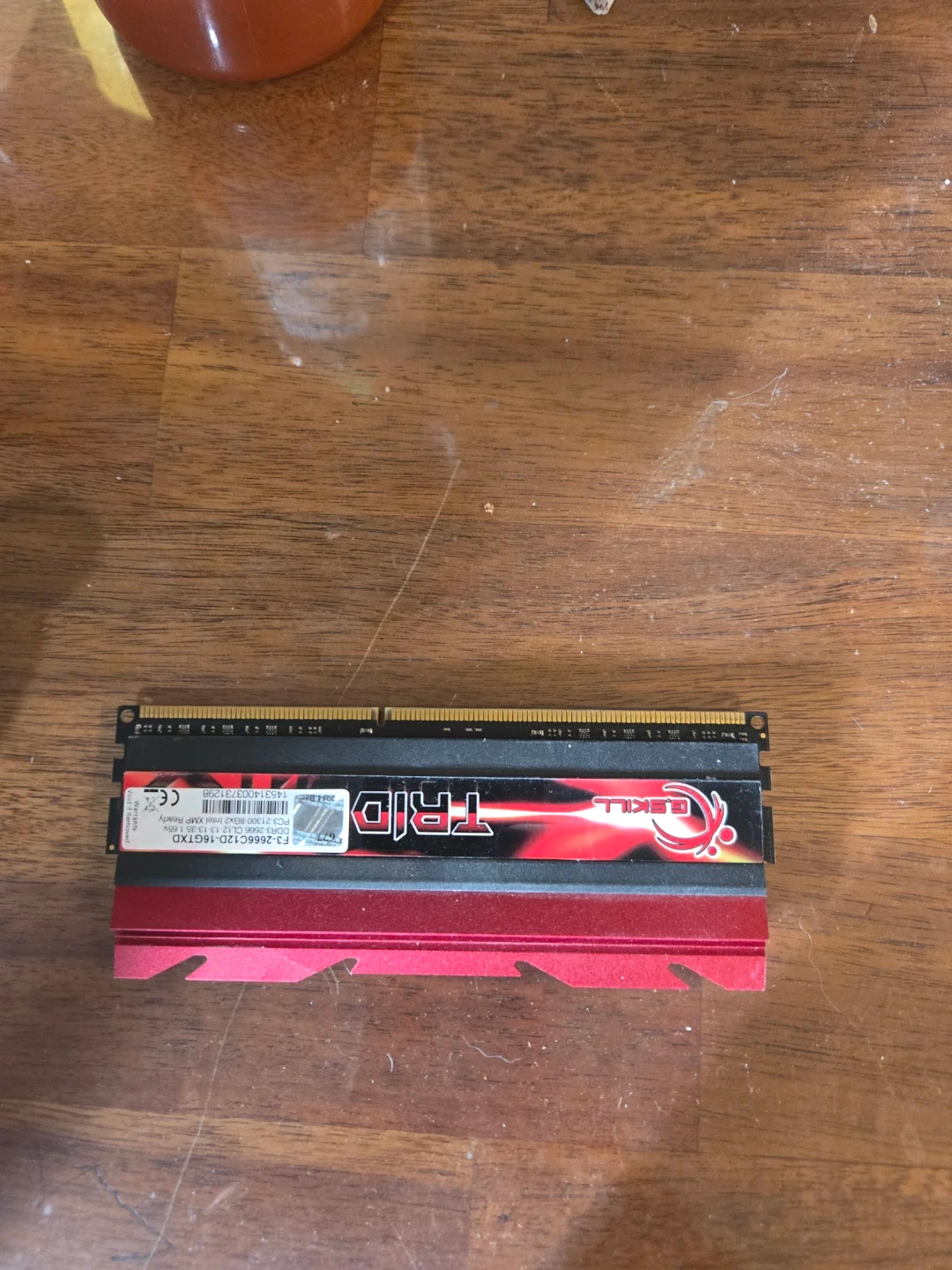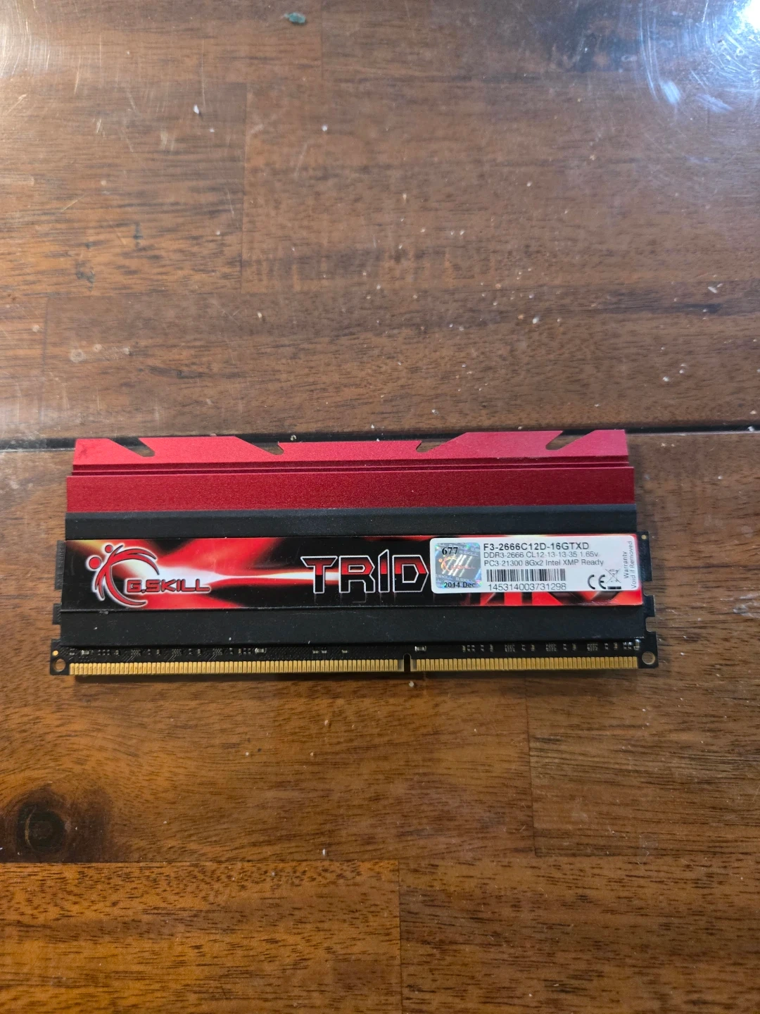 This G.Skill Trident X memory stick is DDR3 2666MHz with a 16GB capacity. It's designed for high-performance computing. Model F3-2666C12D-16GTXD.