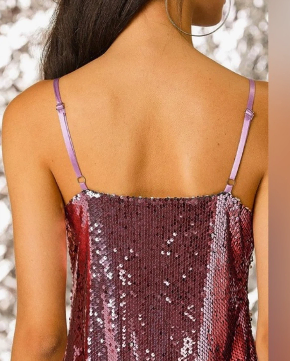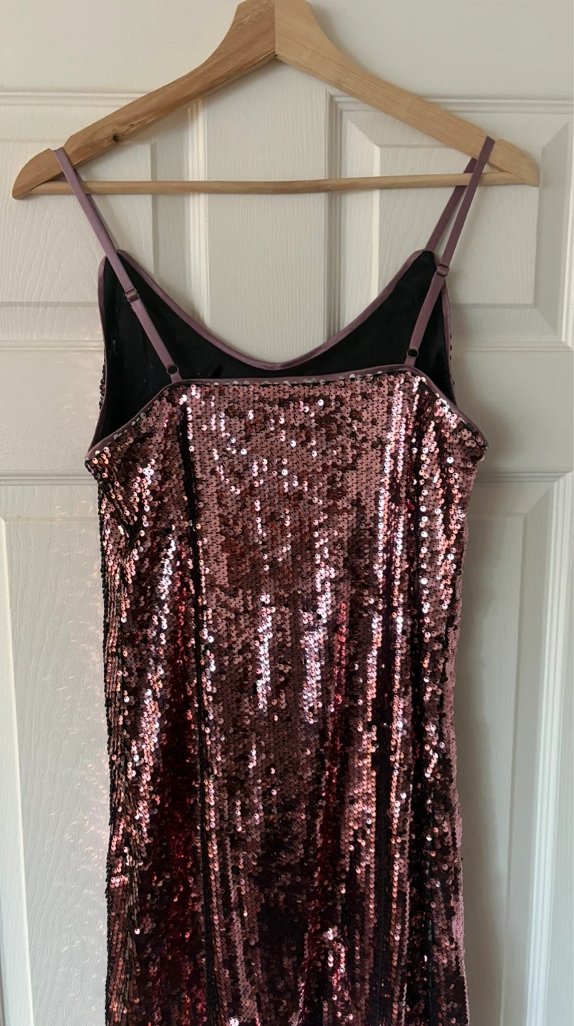 Sparkly sequin pink dress size small . It has adjustable spaghetti straps and a flattering V-neckline.