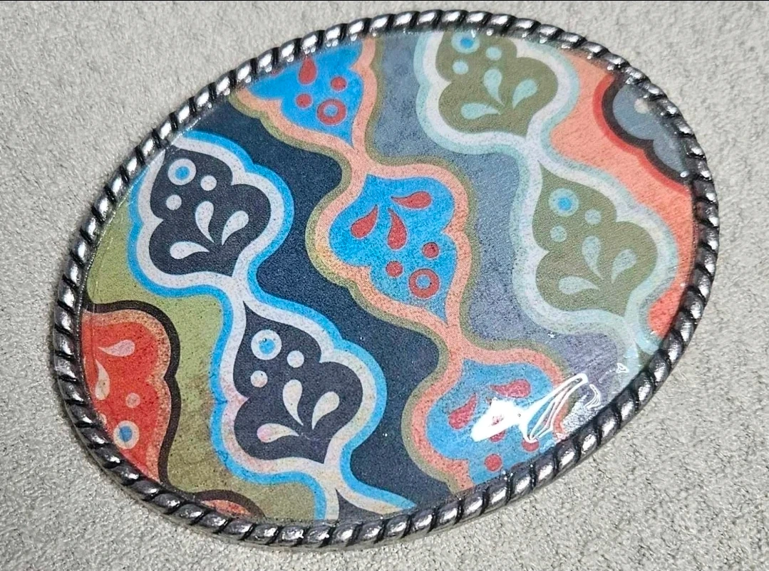 Oval Belt Buckle with Colorful Pattern