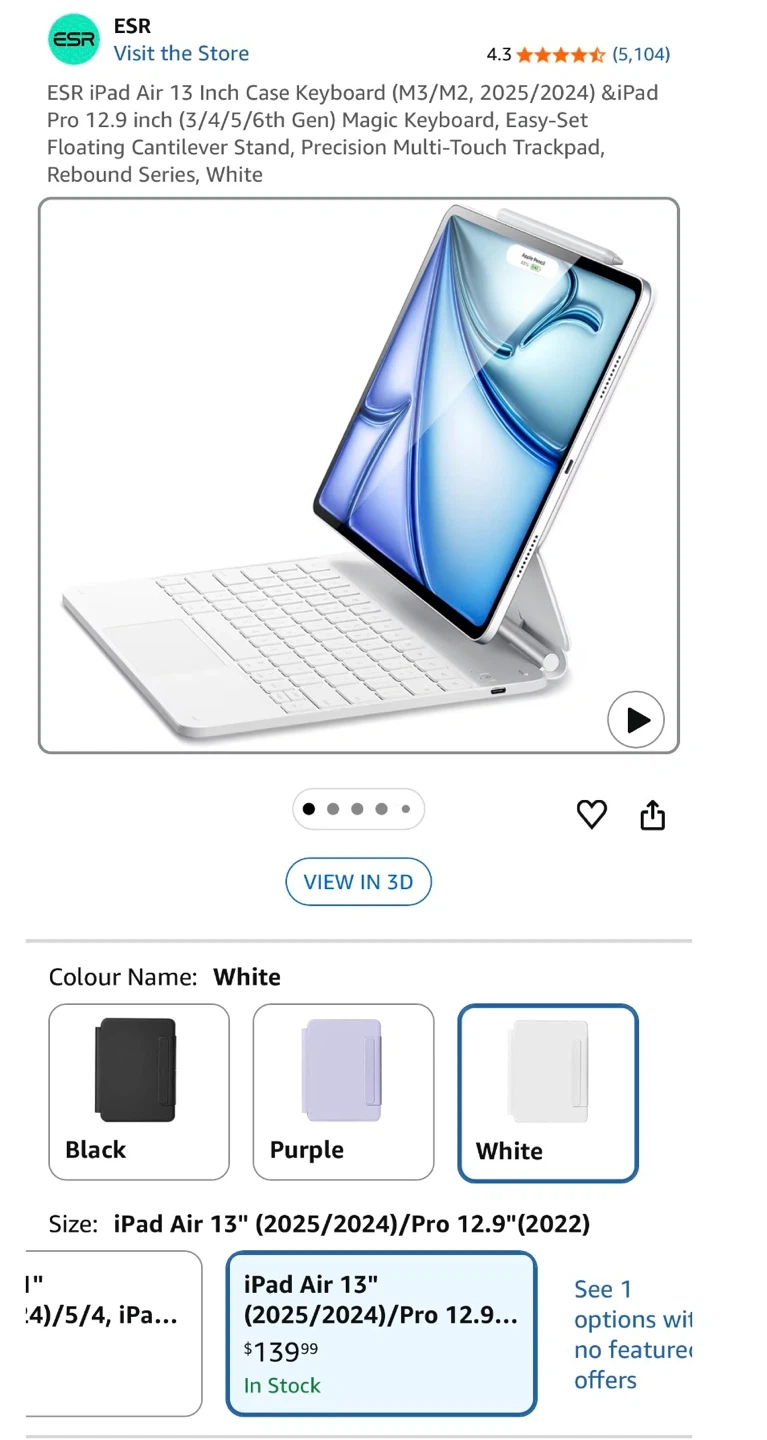 ESR Case Keyboard for iPad Air 13" & Pro 12.9" - White
